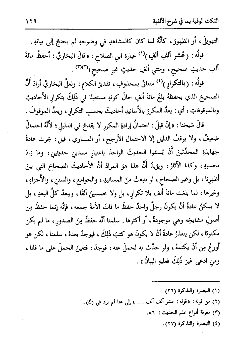 قولهُ: (عُشر ألفِ ألفٍ) (¬1) عبارة ابنِ الصلاحِ: ((قالَ البخاريُّ: أحفظُ مئةَ ألفِ حديثٍ صحيحٍ، ومئتي ألفِ حديثٍ غيرِ صحيحٍ)) (¬2) (¬3).