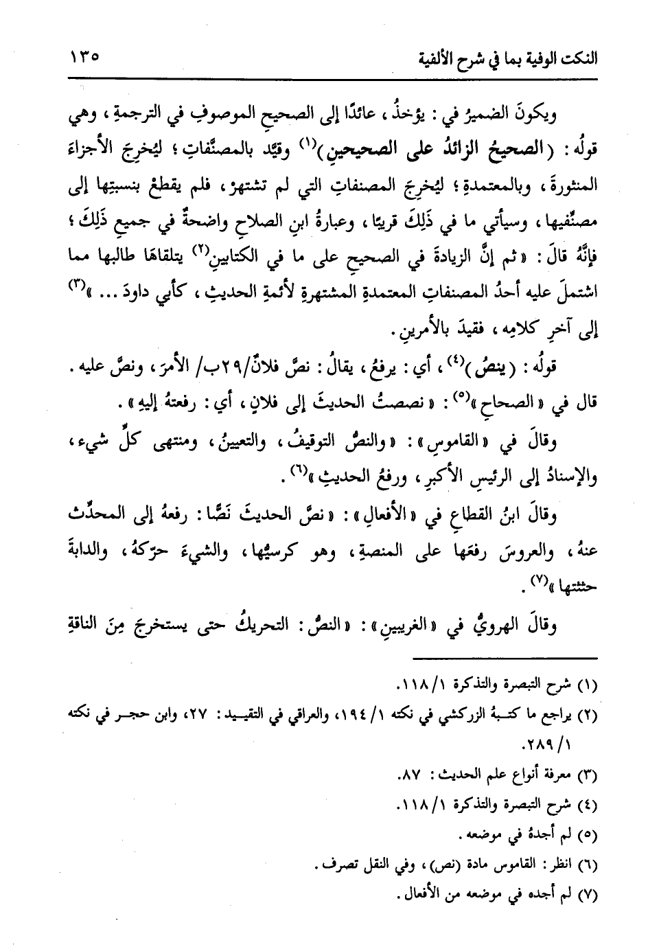 وقالَ في "القاموسِ": ((والنصُّ التوقيفُ، والتعيينُ، ومنتهى كلِ شيء، والإسنادُ إلى الرئيسِ الأكبرِ، ورفعُ الحديثِ)) (¬6).