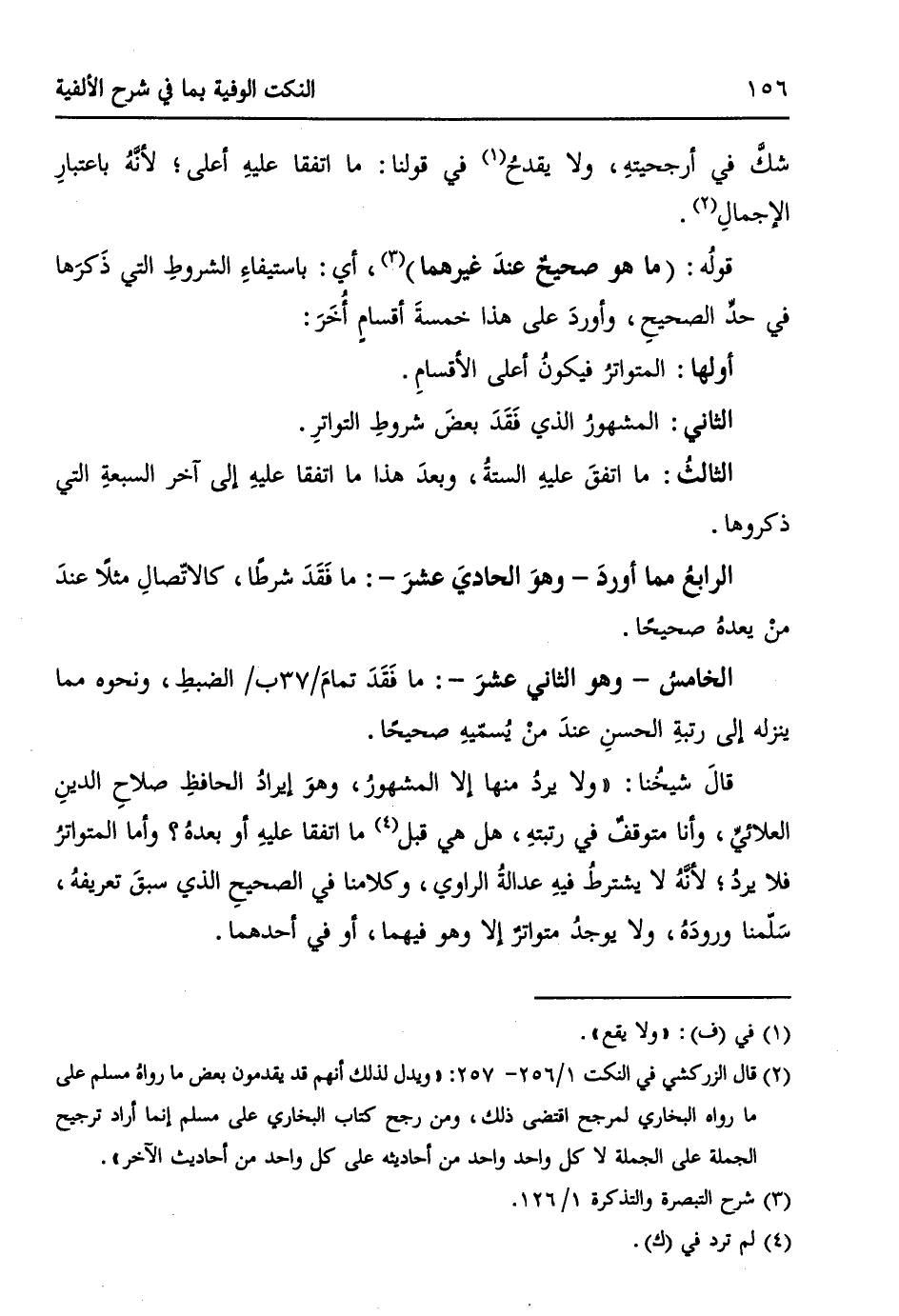 قالَ شيخُنا: ((ولا يردُ منها إلا المشهورُ، وهوَ إيرادُ الحافظِ صلاحِ الدينِ العلائيِّ، وأنا متوقفٌ في رتبتهِ، هل هي قبل (¬4) ما اتفقا عليهِ أو بعدهُ؟ وأما المتواترُ فلا يردُ؛ لأنَّهُ لا يشترطُ فيهِ عدالةُ الراوي، وكلامنا في الصحيحِ الذي سبقَ تعريفهُ، سَلّمنا ورودَهُ، ولا يوجدُ متواترٌ إلا وهو فيهما، أو في أحدهما.
