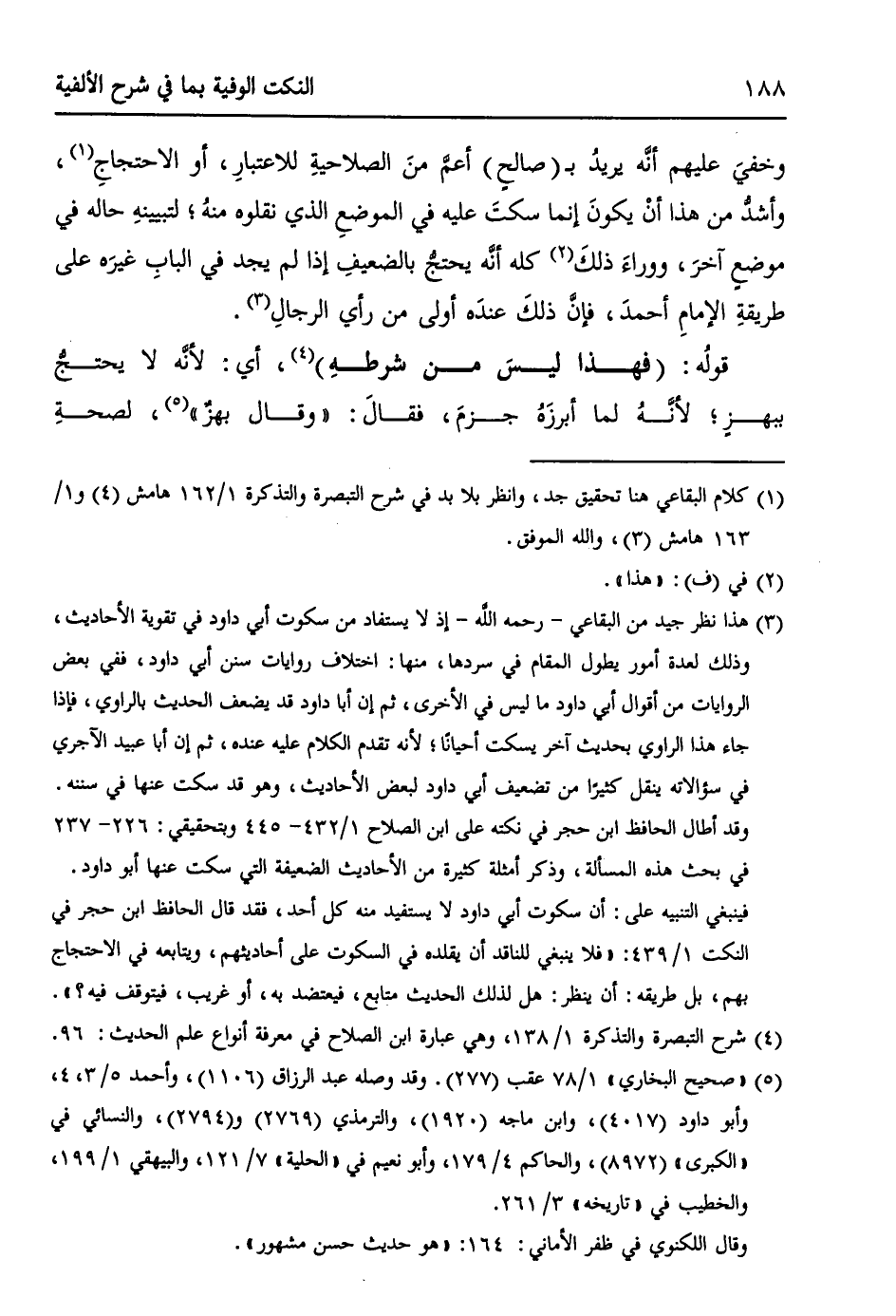 (¬1) كلام البقاعي هنا تحقيق جد، وانظر بلا بد في شرح التبصرة والتذكرة 1/ 162 هامش (4) و1/ 163 هامش (3)، والله الموفق.