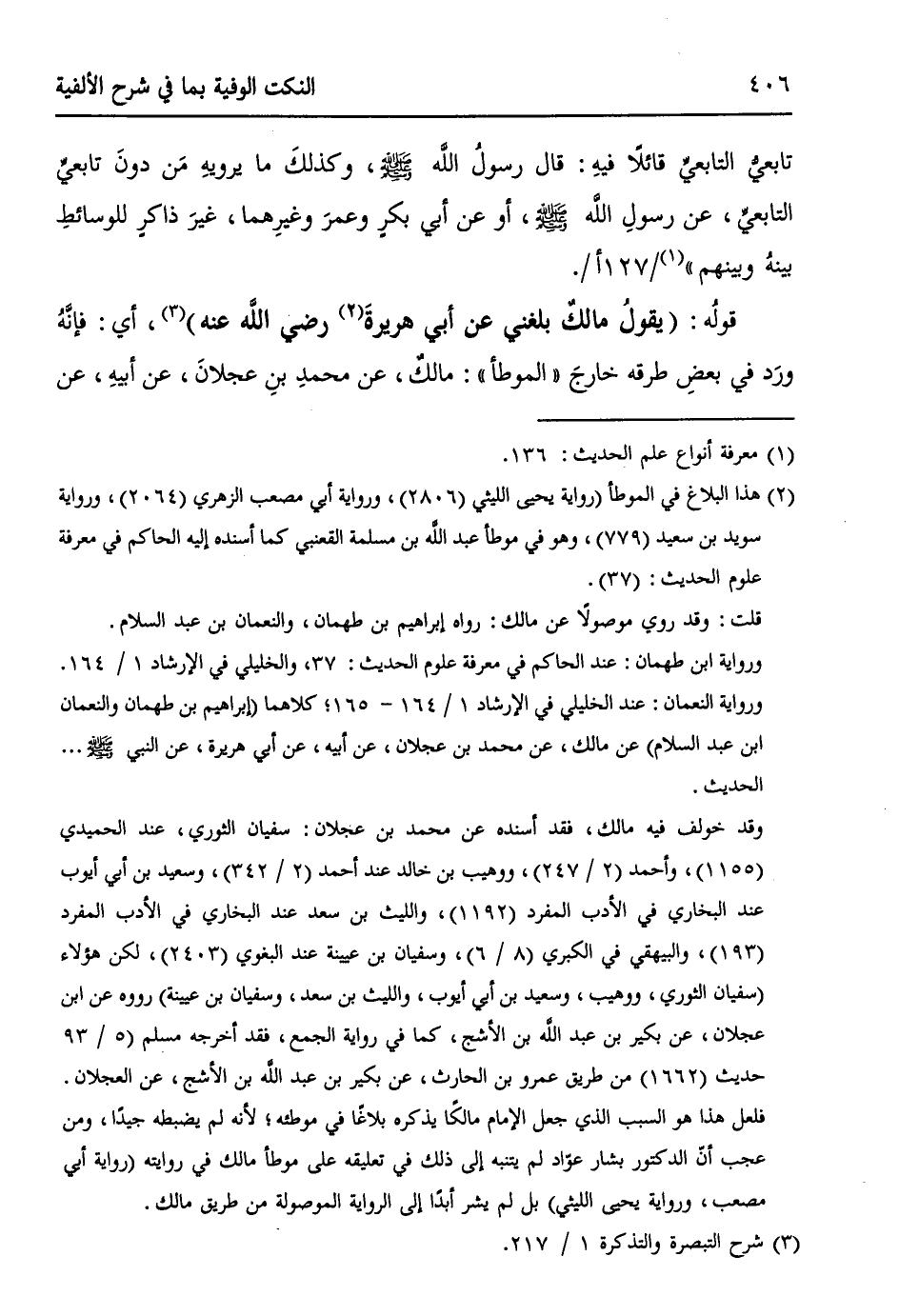 (¬2) هذا البلاغ في الموطأ (رواية يحيى الليثي (2806)، ورواية أبي مصعب الزهري (2064)، ورواية سويد بن سعيد (779)، وهو في موطأ عبد الله بن مسلمة القعنبي كما أسنده إليه الحاكم في معرفة علوم الحديث: 37).