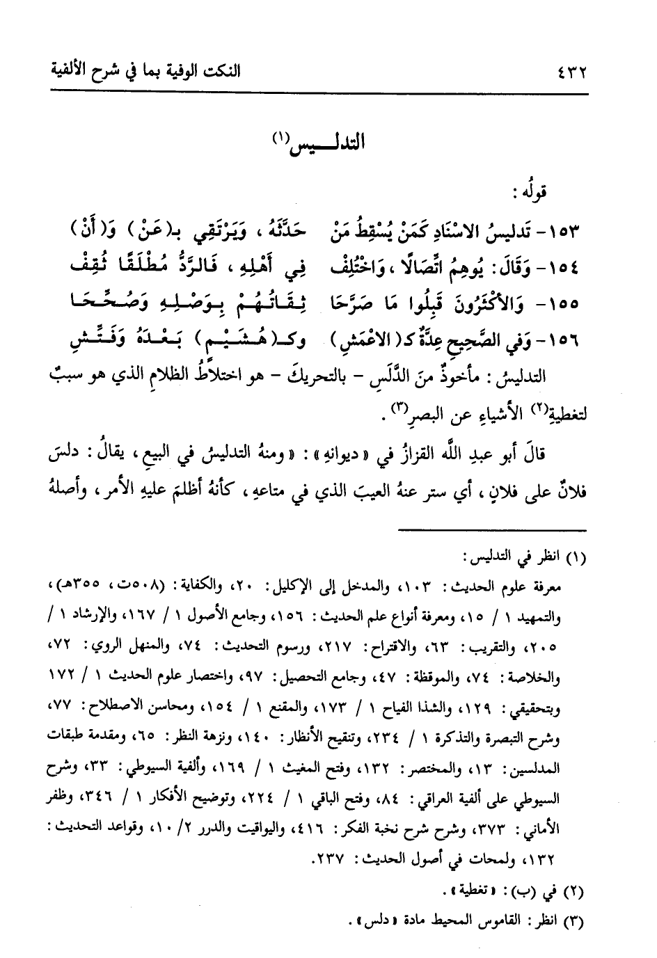 (508 ت، 355 هـ)، والتمهيد 1/ 15، ومعرفة أنواع علم الحديث: 156، وجامع الأصول 1/ 167، والإرشاد 1/ 205، والتقريب: 63، والاقتراح: 217، ورسوم التحديث: 74، والمنهل الروي: 72، والخلاصة: 74، والموقظة: 47، وجامع التحصيل: 97، واختصار علوم الحديث 1/ 172 وبتحقيقي: 129، والشذا الفياح 1/ 173، والمقنع 1/ 154، ومحاسن الاصطلاح: 77، وشرح التبصرة والتذكرة 1/ 234، وتنقيح الأنظار: 140، ونزهة النظر: 65، ومقدمة طبقات المدلسين: 13، والمختصر: 132، وفتح المغيث 1/ 169، وألفية السيوطي: 33، وشرح السيوطي على ألفية العراقي: 84، وفتح الباقي 1/ 224، وتوضيح الأفكار 1/ 346، وظفر الأماني: 373، وشرح شرح نخبة الفكر: 416، واليواقيت والدرر 2/ 10، وقواعد التحديث: 132، ولمحات في أصول الحديث: 237.
