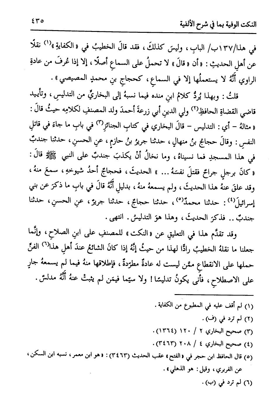وقد تقدّمَ هذا في التعليقِ عن " النكت " للمصنفِ على ابنِ الصلاحِ، وإنما جعلنا ما نقلهُ الخطيبُ رادَّاً لهذا من حيثُ إنَّهُ إذا كانَ الشائعُ عندَ أهلِ هذا (¬6) الفنِّ حملها على الانقطاعِ ممن ليست له عادةٌ مطرّدةٌ، فإطلاقها منهُ فيما لم يسمعهُ جارٍ على الاصطلاحِ، فأنّى يكونُ تدليساً، ولا سيّما في مَن لم يثبتْ عنهُ أَنَّهُ مدلسٌ.
