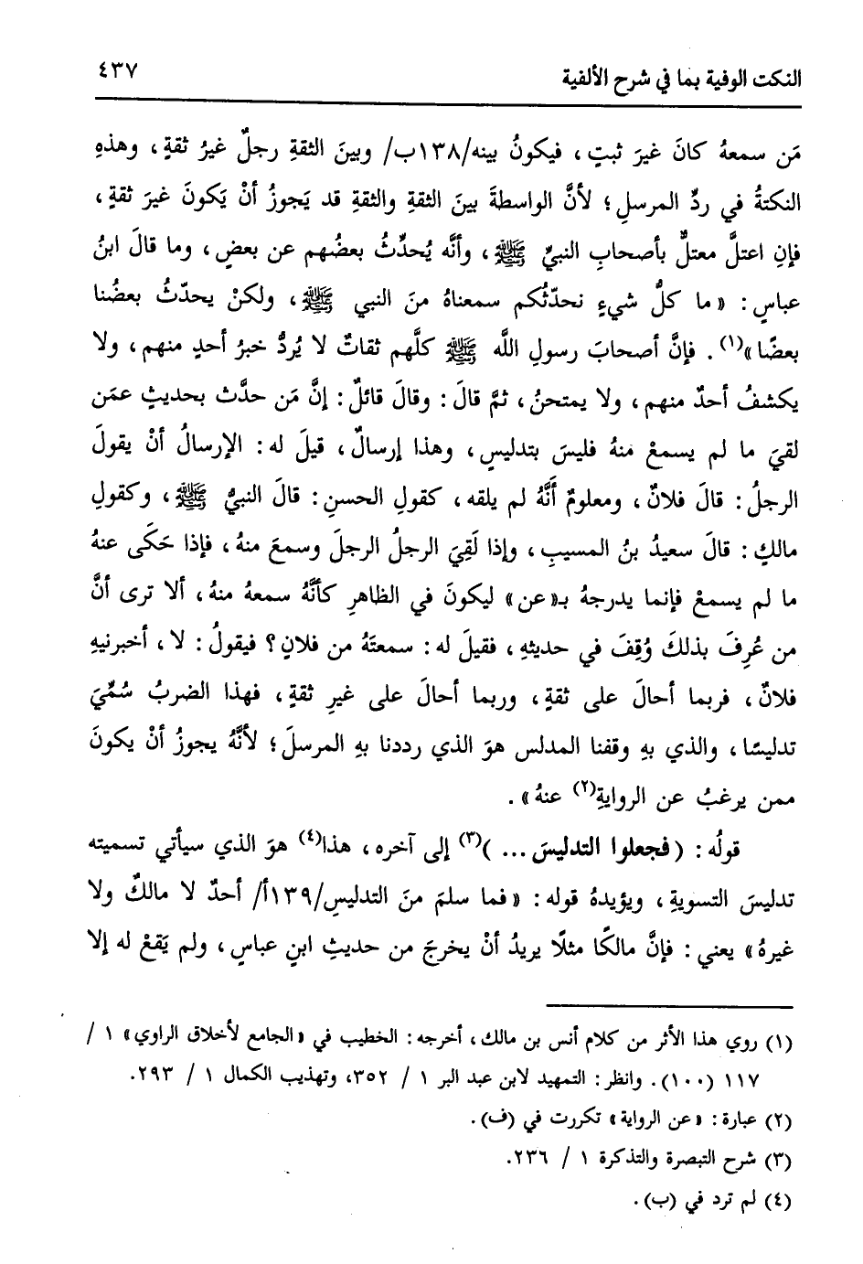 قولهُ: (فجعلوا التدليسَ ... ) (¬3) إلى آخره، هذا (¬4) هوَ الذي سيأتي تسميته تدليسَ التسويةِ، ويؤيدهُ قوله: ((فما سلمَ منَ التدليسِ / 139 أ / أحدٌ لا مالكٌ ولا غيرهُ)) يعني: فإنَّ مالكاً مثلاً يريدُ أنْ يخرجَ من حديثِ ابنِ عباسٍ، ولم يقعْ له إلا من