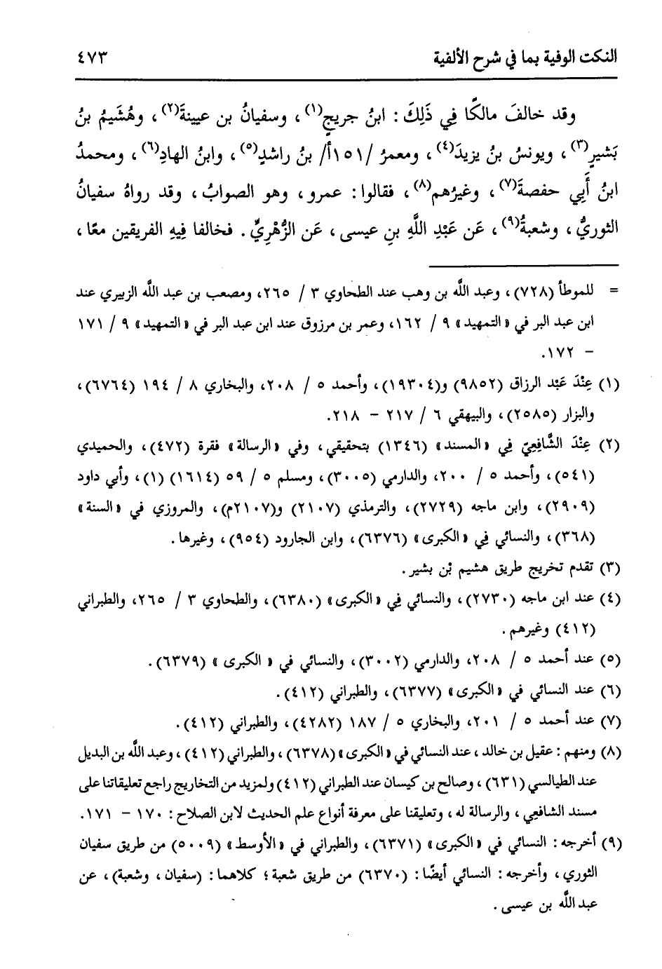(¬8) ومنهم: عقيل بن خالد، عند النسائي (6378)، والطبراني (412)، وعبد الله بن البديل عند الطيالسي (631)، وصالح بن كيسان عند الطبراني (412) ولمزيد من التخاريج راجع تعليقاتنا على مسند الشافعِي، والرسالة له، وتعليقنا على معرفة أنواع علم الحديث لابن الصلاح: 170 - 171.