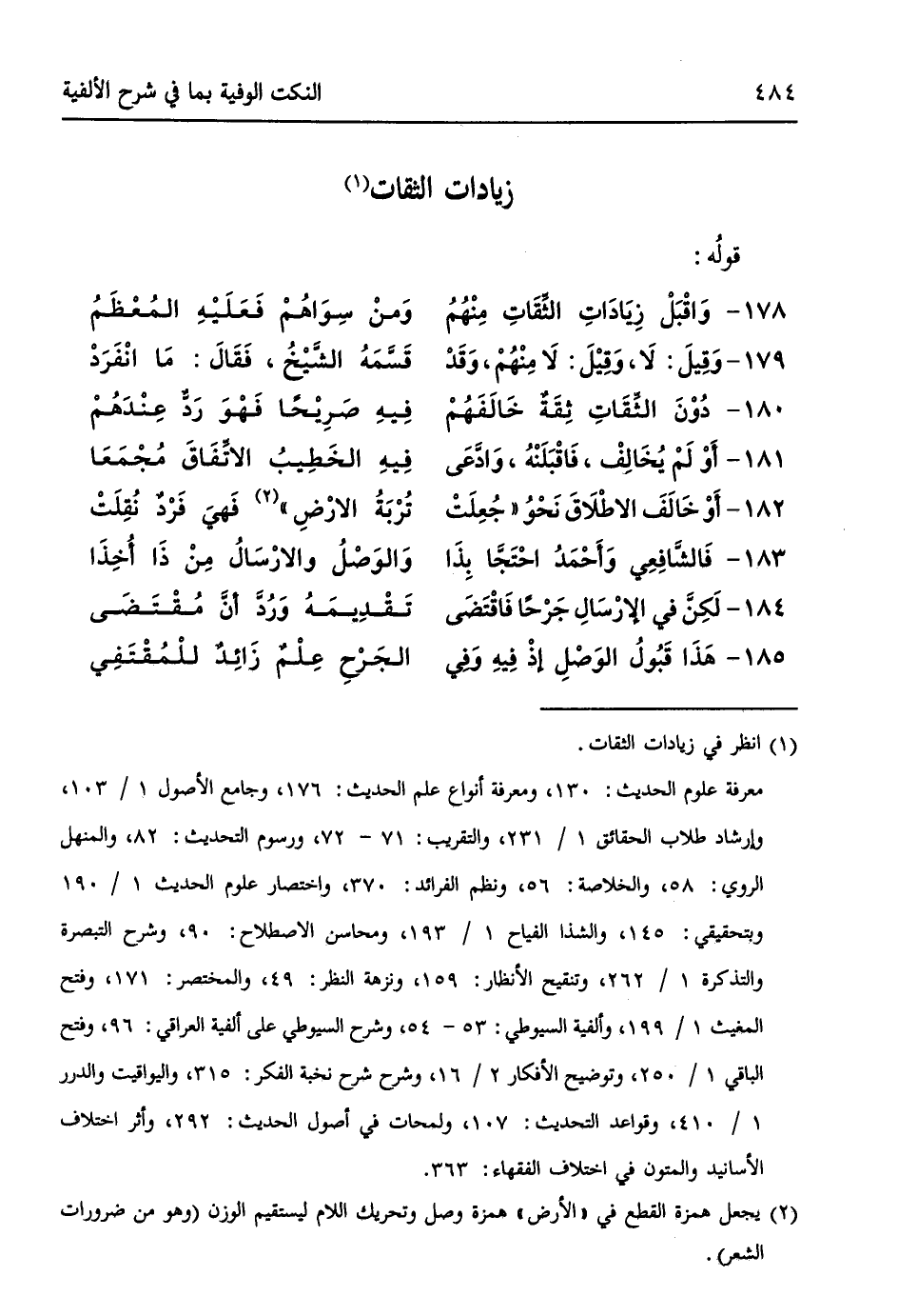 178 - وَاقْبَلْ زِيَادَاتِ الثِّقَاتِ مِنْهُمُ ... وَمَنْ سِوَاهُمْ فَعَلَيْهِ المُعْظَمُ