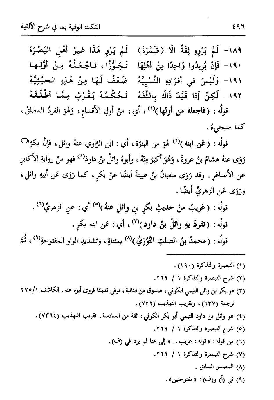 189 - لَمْ يَرْوِهِ ثِقَةٌ الاّ (ضَمْرَهْ) ... لَمْ يَرْوِ هَذَا غيرُ أهْلِ البَصْرَهْ