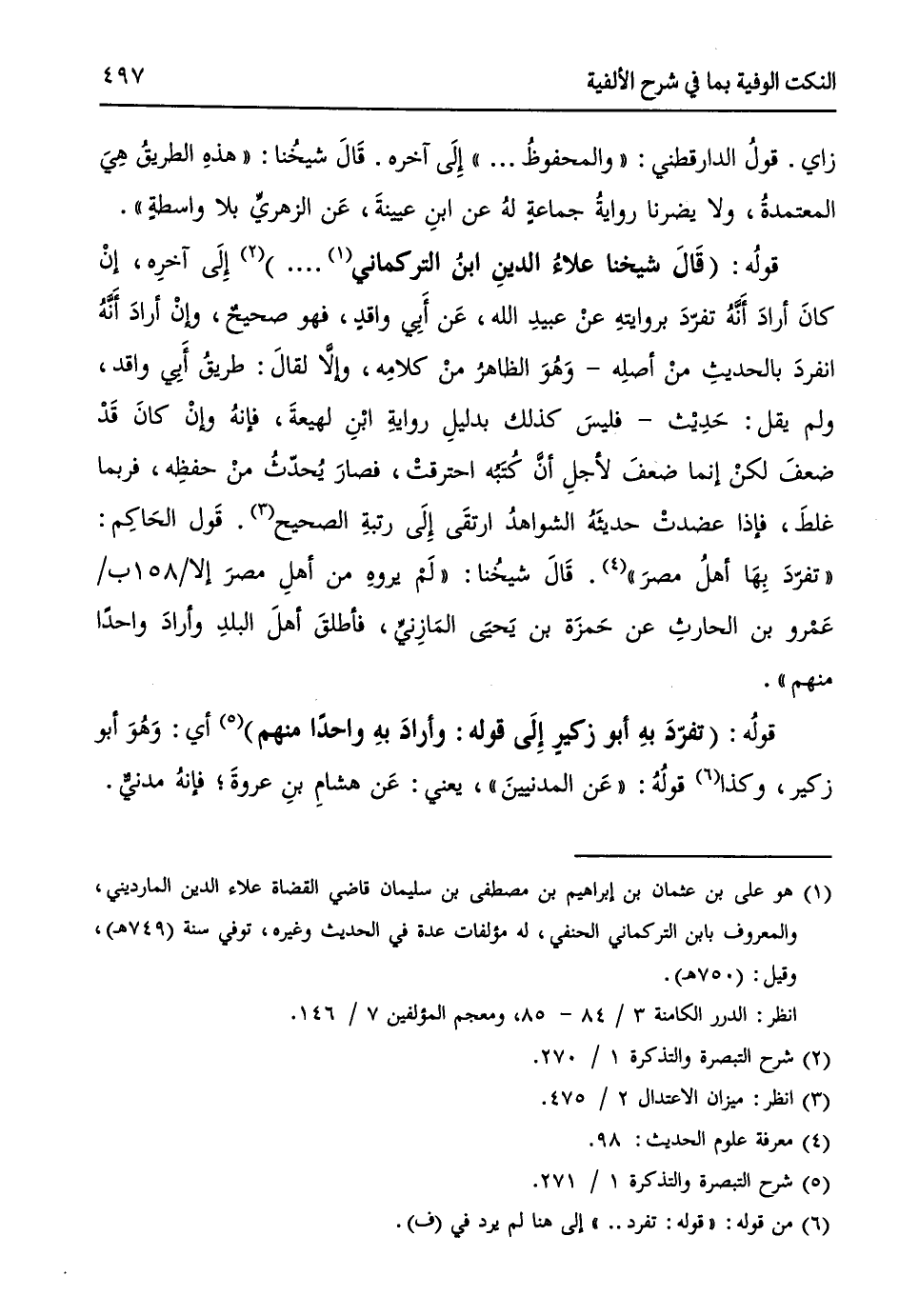 (¬1) هو علي بن عثمان بن إبراهيم بن مصطفى بن سليمان قاضي القضاة علاء الدين المارديني، المعروف بابن التركماني الحنفي، له مؤلفات عدة في الحديث وغيره، توفي سنة (749 هـ)، وقيل: (750 هـ).