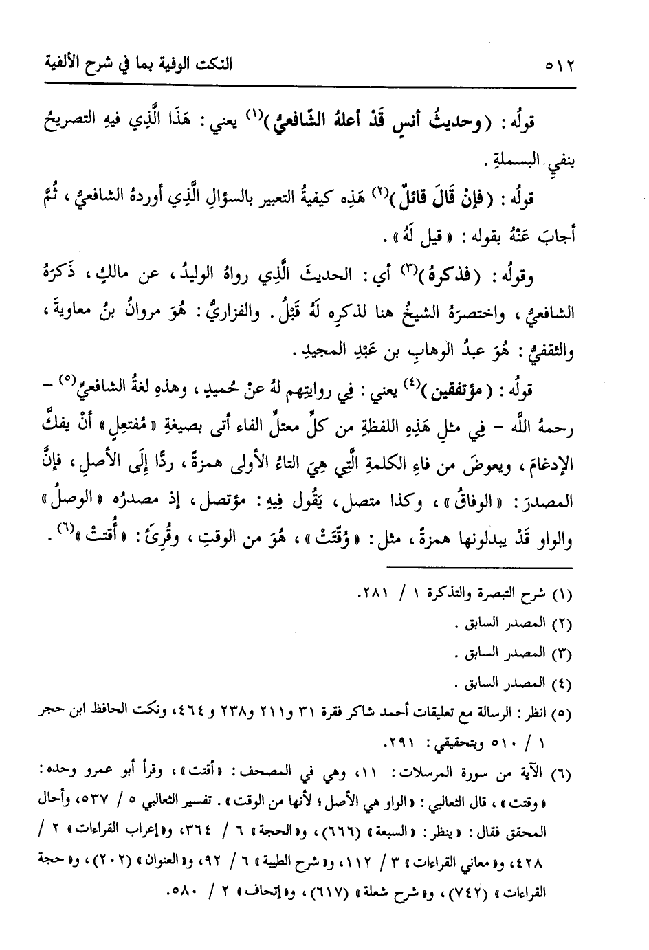 (¬5) انظر: الرسالة مع تعليقات أحمد شاكر فقرة 31 و211 و213 و238 و464، ونكت الحافظ ابن حجر 1/ 510 وبتحقيقي: 291.