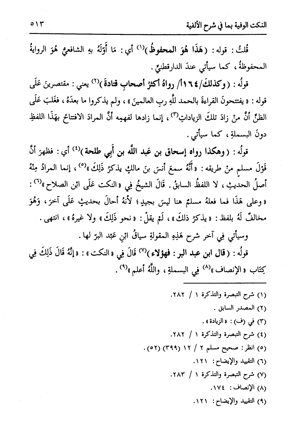 قولهُ: (قال ابن عبد البر: فهؤلاء) (¬7) قَالَ فِي " النكت ": ((إنَّهُ قَالَ ذَلِكَ فِي كِتَاب " الإنصاف " (¬8) فِي البسملةِ، واللهُ أعلم)) (¬9).