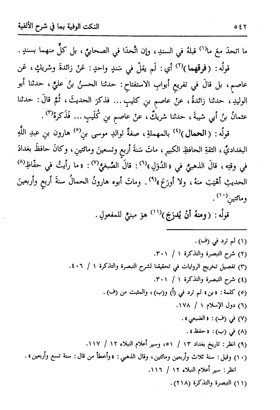 (¬9) انظر: تاريخ بغداد 13/ 51، وسير أعلام النبلاء 12/ 117.