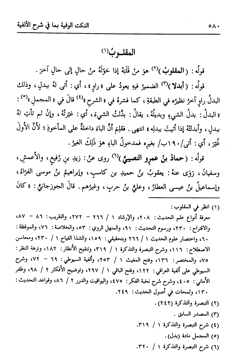 قولهُ: (المقلوبِ) (¬2) هوَ منْ قَلَبَهُ إذا حَوّلَهُ منْ حالٍ إلى حالٍ آخرَ.