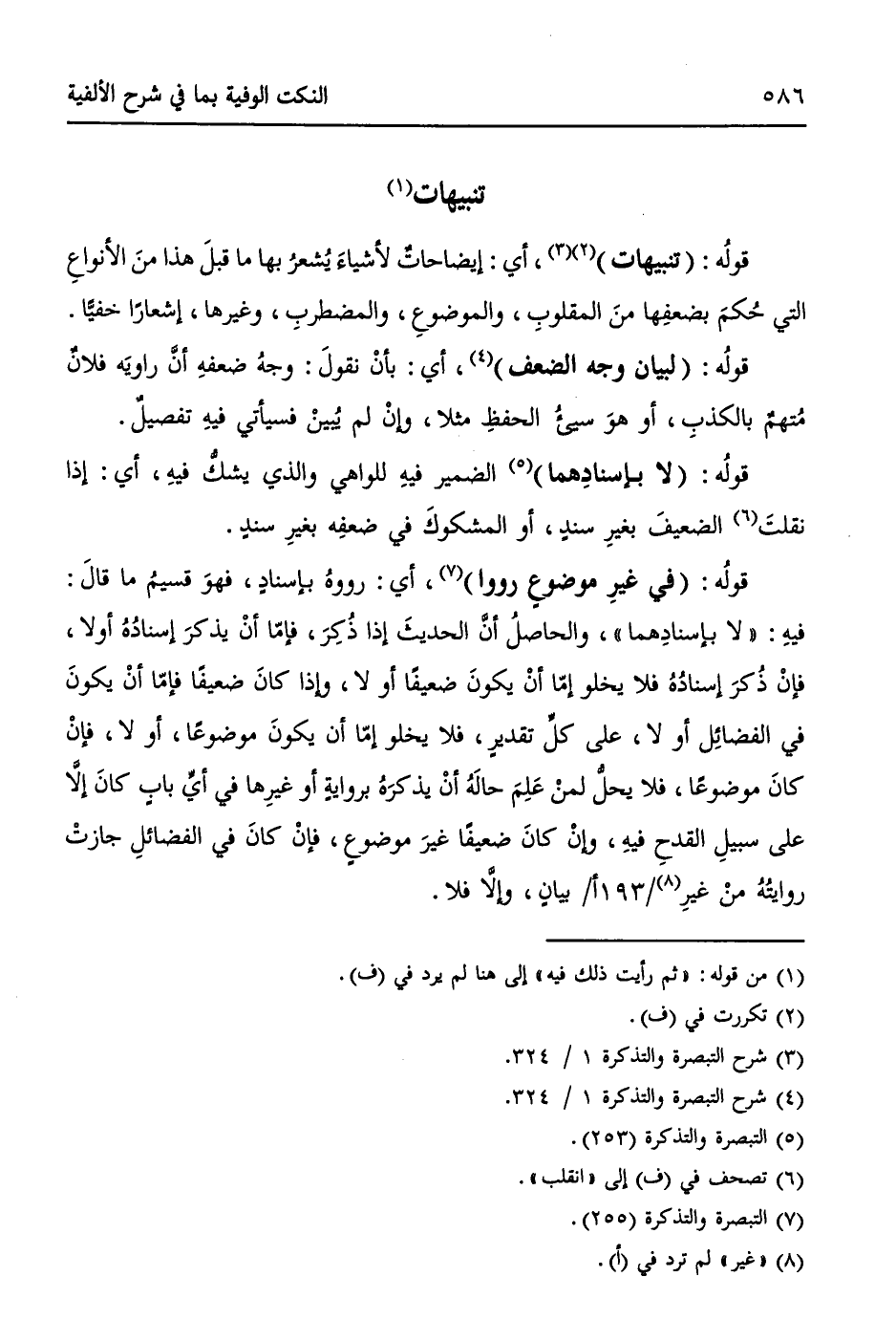 قولهُ: (تنبيهات (¬2)) (¬3)، أي: إيضاحاتٌ لأشياءَ يُشعرُ بها ما قبلَ هذا منَ الأنواعِ التي حُكمَ بضعفِها منَ المقلوبِ، والموضوعِ، والمضطربِ، وغيرها، إشعاراً خفياً.