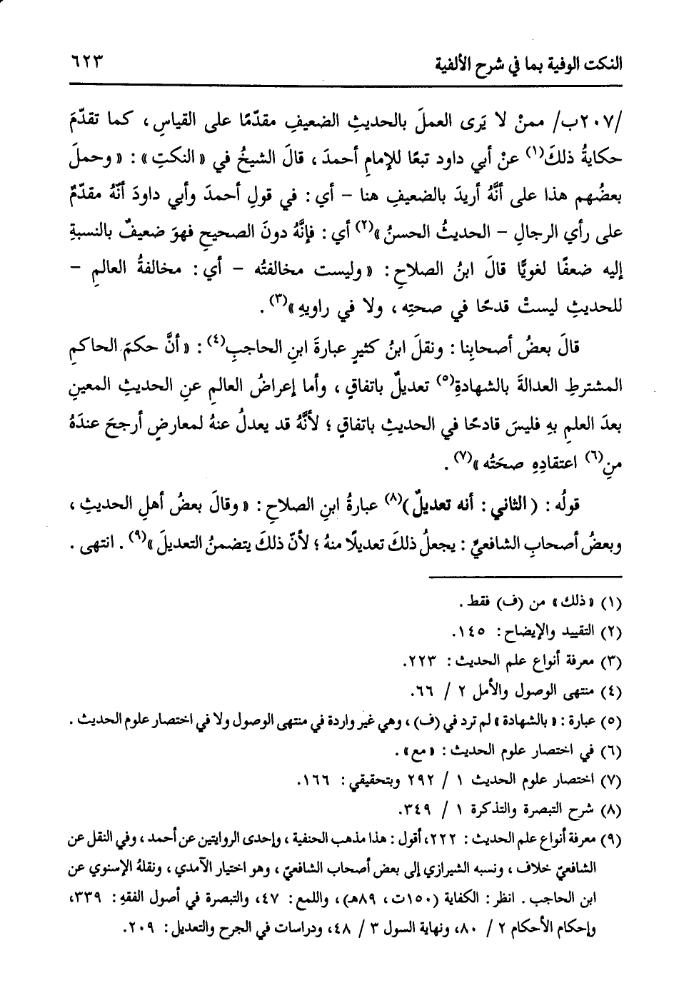 (¬9) معرفة أنواع علم الحديث: 222، أقول: هذا مذهب الحنفية، وإحدى الروايتين عن أحمد، وفي النقل عن الشافعيّ خلاف، ونسبه الشيرازي إلى بعض أصحاب الشافعيّ، وهو اختيار الآمدي، ونقلهُ الإسنوي عن ابن الحاجب. انظر: الكفاية (150 ت، 89هـ)، واللمع: 47، والتبصرة في أصول الفقهِ: 339، وإحكام الأحكام 2/ 80، ونهاية السول 3/ 48، ودراسات في الجرح والتعديل: 209.
