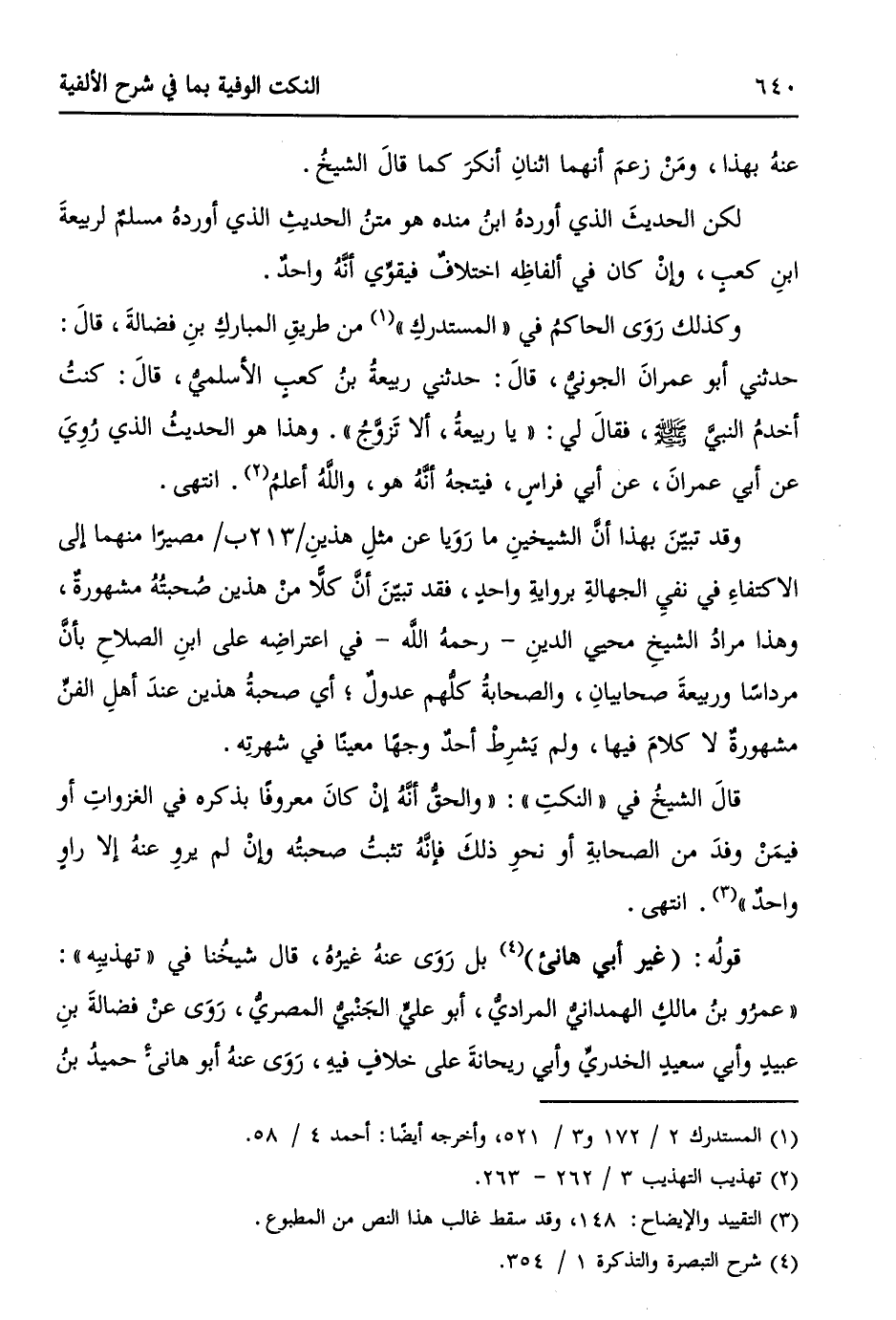 قالَ الشيخُ في "النكتِ ": ((والحقُ أنَّهُ إنْ كانَ معروفاً بذكره في الغزواتِ أو في مَنْ وفدَ من الصحابةِ أو نحو ذلكَ فإنَّهُ تثبتُ صحبتهُ وإنْ لم يروِ عنهُ إلا راوٍ واحدٌ)). (¬3) انتهى.