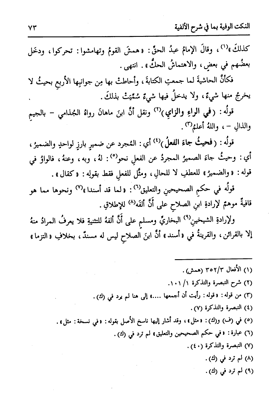 قولهُ في حكمِ الصحيحينِ والتعليق (¬6): (لما قد أسندا) (¬7) ونحوها مما هو قافيةٌ موهمٌ لإرادةِ ابنِ الصلاحِ على أَنَّ ألفهُ (¬8) للإطلاقِ.