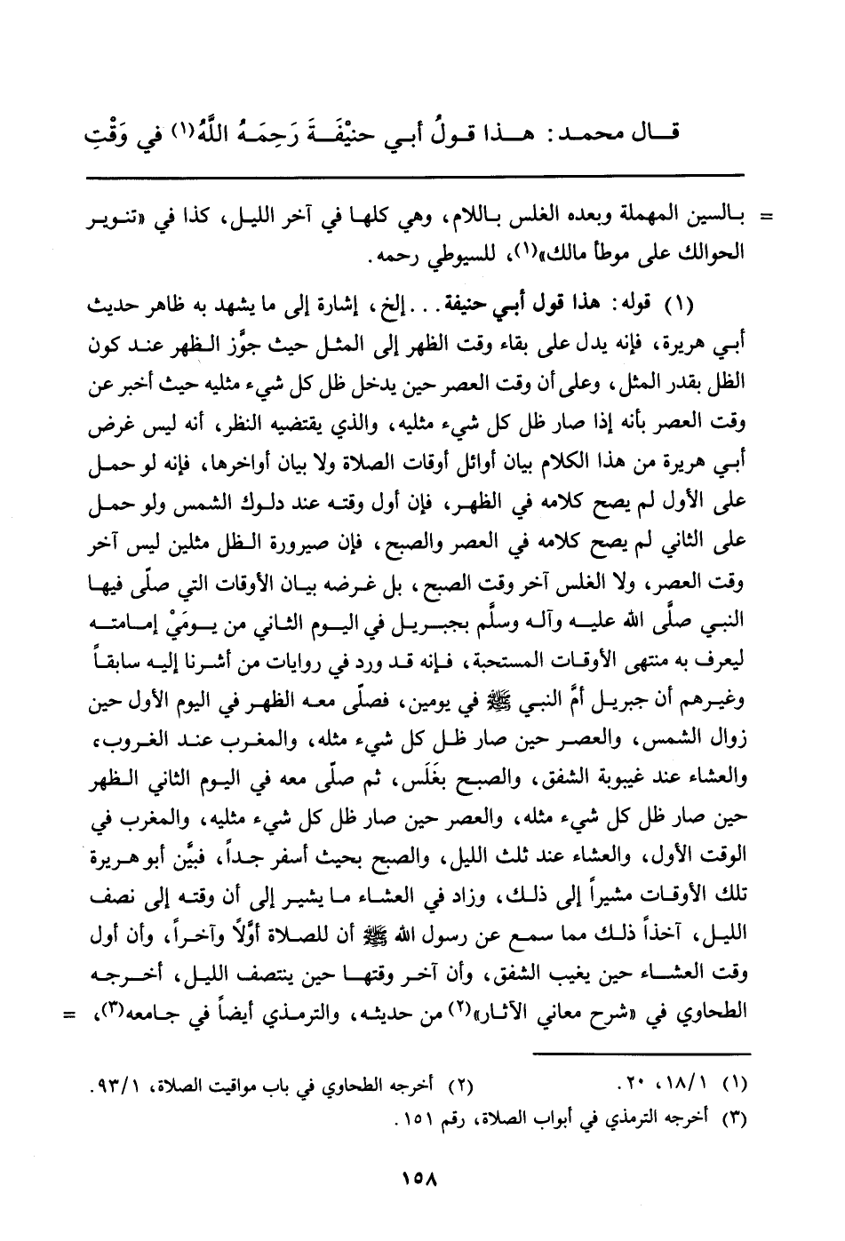 قَالَ مُحَمَّدٌ: هَذَا قولُ أَبِي حنيْفَةَ رَحِمَهُ اللَّهُ (¬1) في وَقْتِ