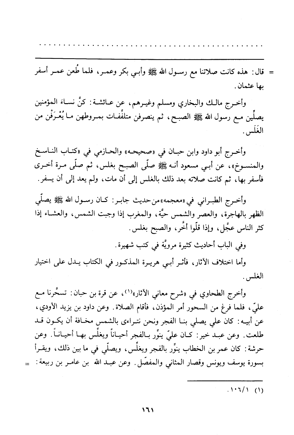 وأخرج أبو داود وابن حبان في "صحيحه" والحازمي في "كتاب الناسخ والمنسوخ"، عن أبي مسعود أنه صلى الله عليه وسلم صلّى الصبح بغلس، ثم صلّى مرة أخرى فأسفر بها، ثم كانت صلاته بعد ذلك بالغلس إلى أن مات، ولم يعد إلى أن يسفر.