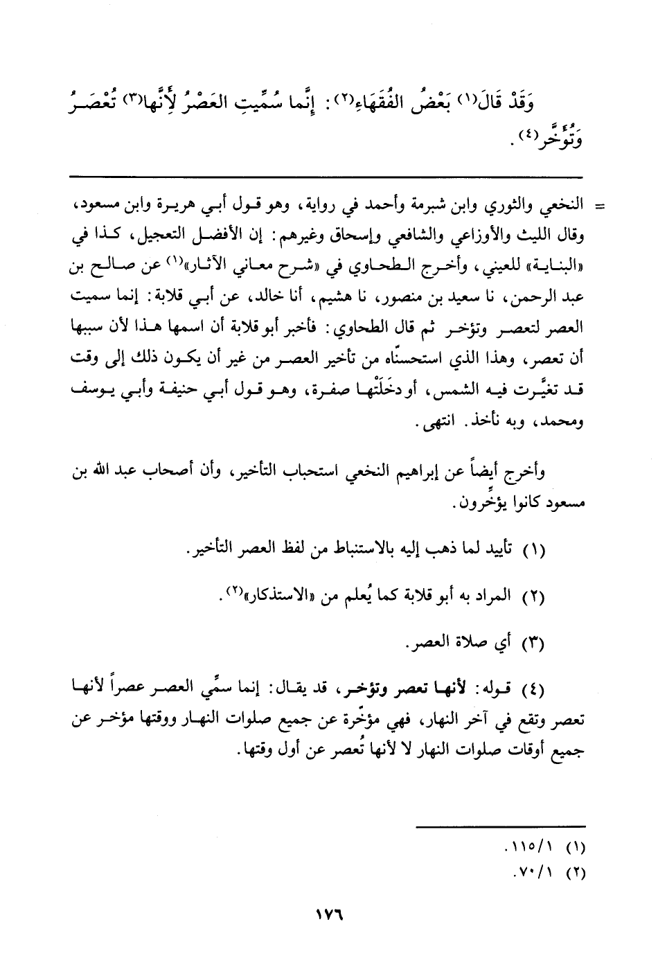(¬1) تأييد لما ذهب إليه بالاستنباط من لفظ العصر التأخير.