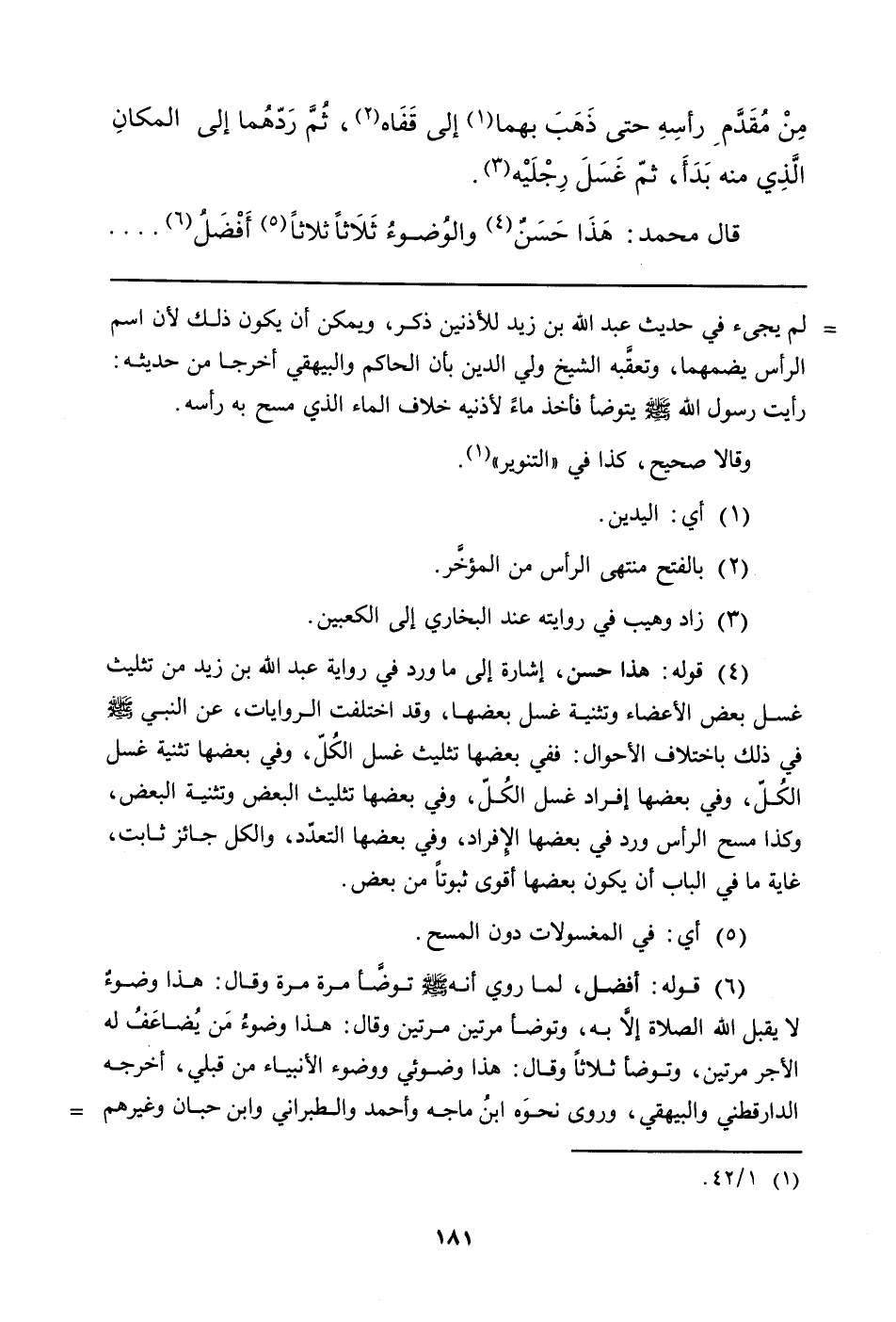(¬4) قوله: هذا حسن، إشارة إلى ما ورد في رواية عبد الله بن زيد من تثليث غسل بعض الأعضاء وتثنية غسل بعضها، وقد اختلفت الروايات، عن النبي صلى الله عليه وسلم في ذلك باختلاف الأحوال: ففي بعضها تثليث غسل الكُلّ، وفي بعضها تثنية غسل الكُلّ، وفي بعضها إفراد غسل الكُلّ، وفي بعضها تثليث البعض وتثنية البعض، وكذا مسح الرأس ورد في بعضها الإفراد، وفي بعضها التعدّد، والكل جائز ثابت، غاية ما في الباب أن يكون بعضها أقوى ثبوتاً من بعض.
