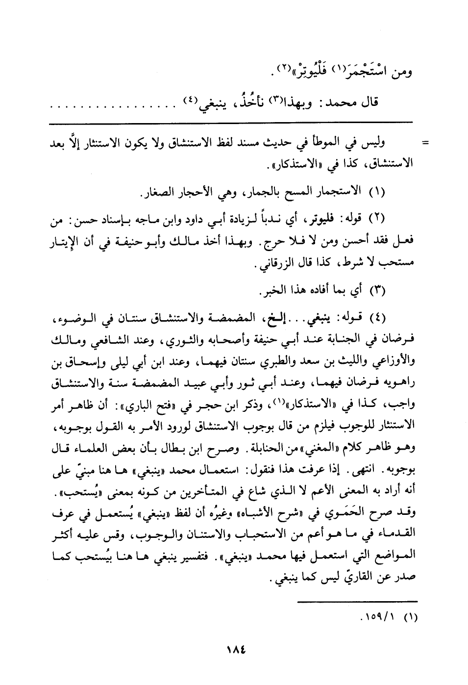 (¬1) الاستجمار المسح بالجمار، وهي الأحجار الصغار.
