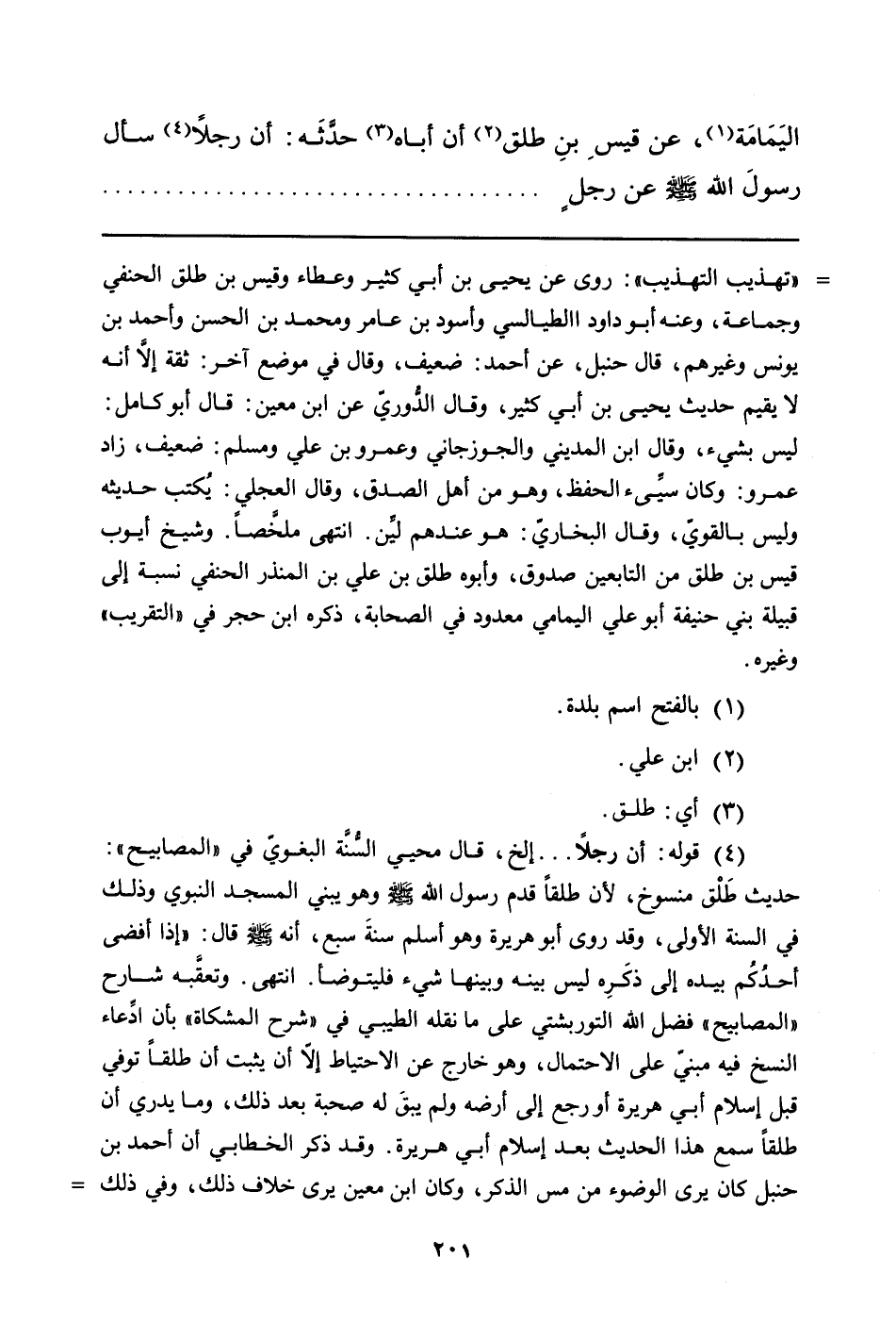اليَمَامة (¬1) ، عَنْ قَيْسِ بْنِ طَلْقٍ (¬2) أَنَّ أَبَاهُ (¬3) حدَّثه: أَنَّ رَجُلا (¬4) سَأَلَ رَسُولَ اللَّهِ صَلَّى الله عليه وسلم عن رجلٍ