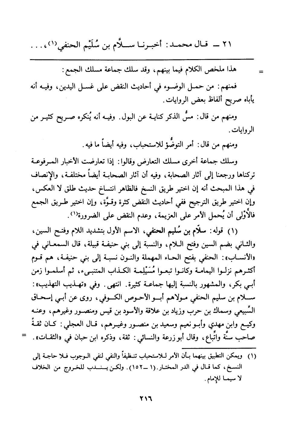 21 - قال محمد: أخبرنا سلام بن سُلَيْم الحنفي (¬1) ،