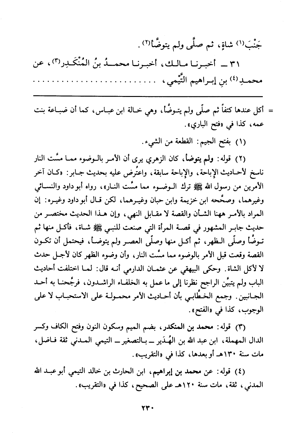 (¬4) قوله: عن محمد بن إبراهيم، ابن الحارث بن خالد التيمي أبو عبد الله المدني، ثقة، مات سنة 120 هـ على الصحيح، كذا في "التقريب".
