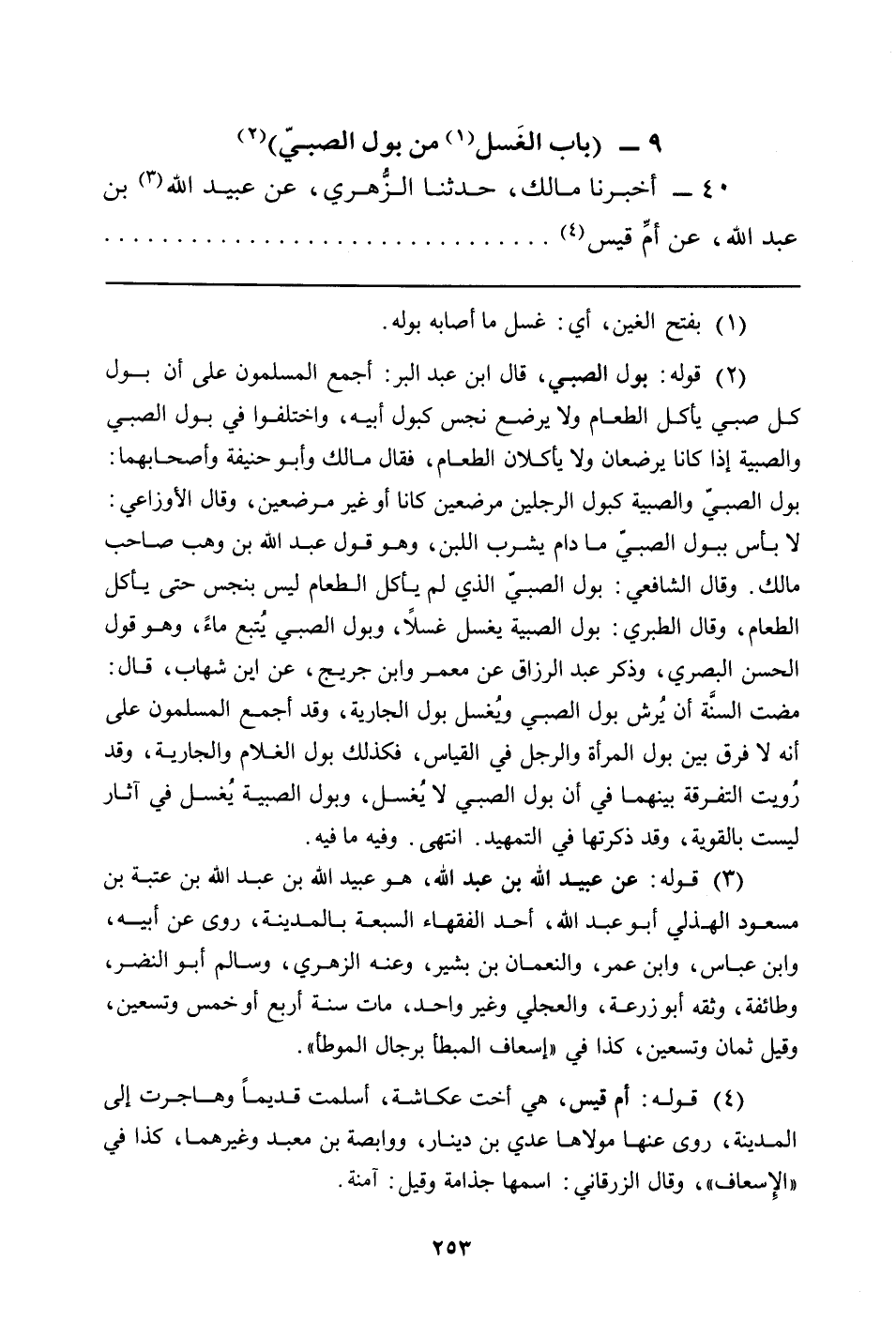 (¬3) قوله: عن عبيد الله بن عبد الله، هو عبيد الله بن عبد الله بن عبتة بن مسعود الهذلي أبو عبد الله، أحد الفقهاء السبعة بالمدينة، روى عن أبيه، وابن عباس، وابن عمر، والنعمان بن بشير، وعنه الزهري، وسالم أبو النضر، وطائفة، وثقه أبو زرعة، والعجلي وغير واحد، مات سنة أربع أو خمس وتسعين، وقيل ثمان وتسعين، كذا في "إسعاف المبطأ برجال الموطأ".