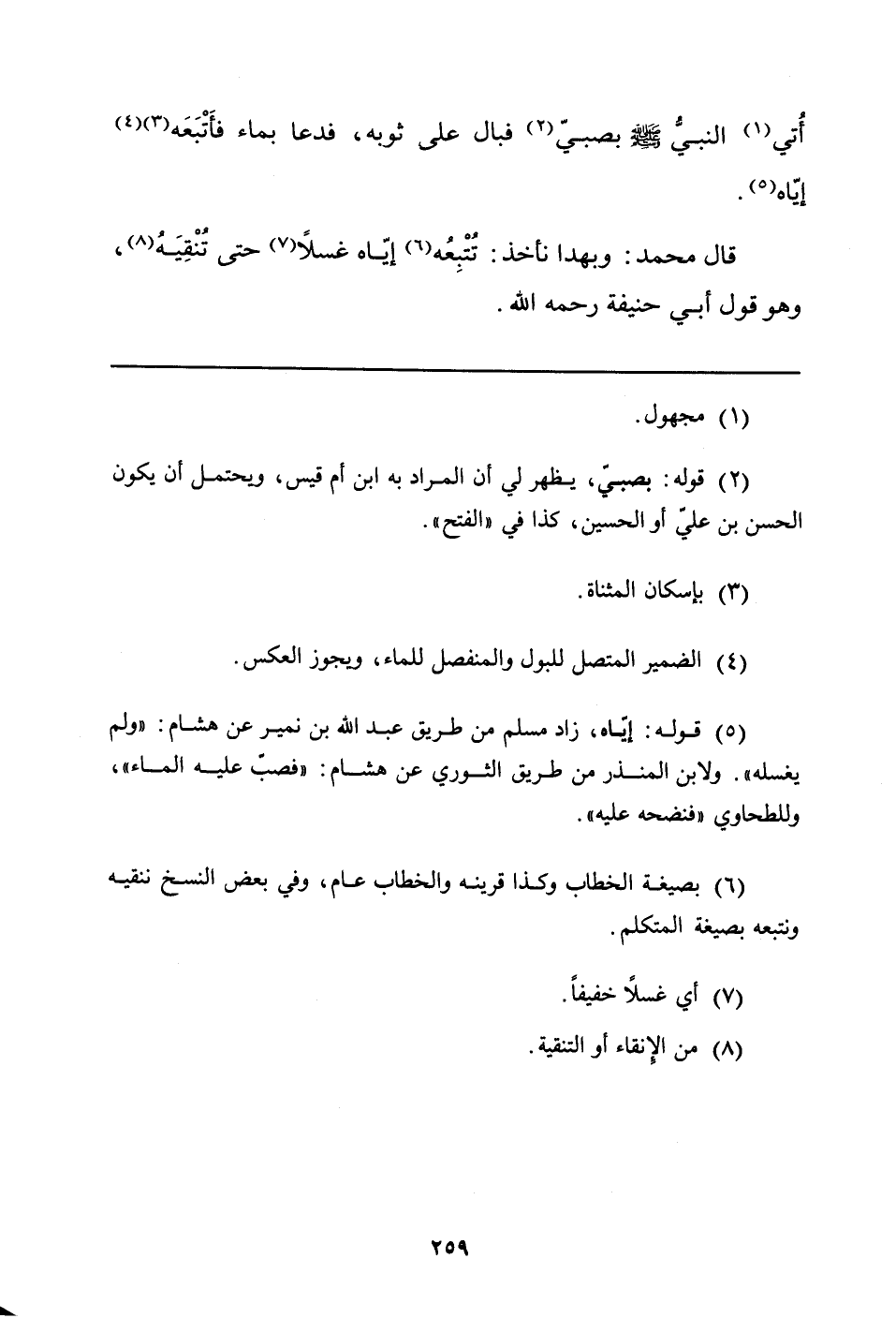 (¬4) الضمير المتصل للبول والمنفصل للماء، ويجوز العكس.