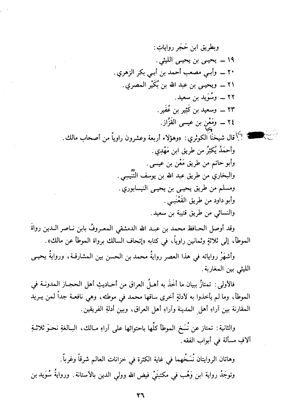 ومزيتُهُ خامساً: أنه من رواية الإمام محمد بن الحسن الشيباني، تلميذ الإمامين أبي حنيفة وأبي يوسف، وشيخ الإمام الشافعي، وقد أتقن روايتَهُ عن شيخه مالك، وأضاف بعدَ روايتِهِ أحاديثَ الباب بيانَ مذهبه في المسألة موافقاً أو مخالفاً، وبيانَ مذهب شيخة الإمام أبي حنيفة فيها، وموافَقَتَهُ له أو مخالفتَه، وبيانَ مذهب شيخة الإمام مالك أحياناً، ومذهبَ عامَّةِ فقهائنا أيضاً.