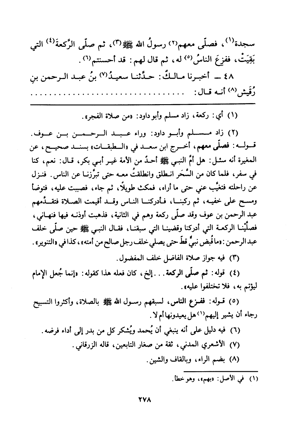 سَجْدَةً (¬1) ، فَصَلَّى مَعَهُمْ (¬2) رَسُولُ اللَّهِ صَلَّى اللَّهُ عَلَيْهِ وَسَلَّمَ (¬3) ، ثُمَّ صَلَّى الرُّكعة (¬4) الَّتِي بَقِيَت، ففزِعَ الناسُ (¬5) لَهُ ثُمَّ قَالَ لَهُمْ: قَدْ أَحْسَنْتُمْ (¬6) .