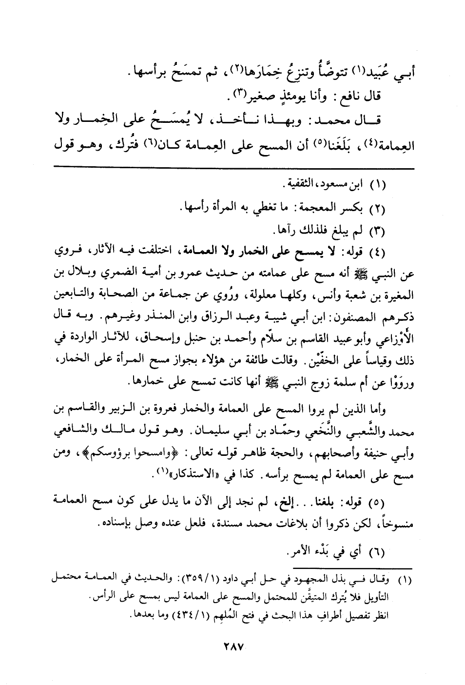 (¬5) قوله: بلغنا ... إلخ لم نجد إلى الآن ما يدل على كون مسح العمامة منسوخاً، لكن ذكروا أن بلاغات محمد مسندة، فلعل عنده وصل بإسناده.