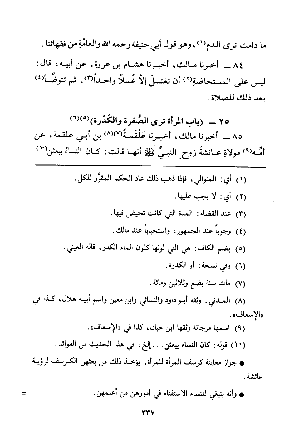 25 - (باب المرأة ترى الصُّفرة والكُدْرة (¬5) (¬6))
