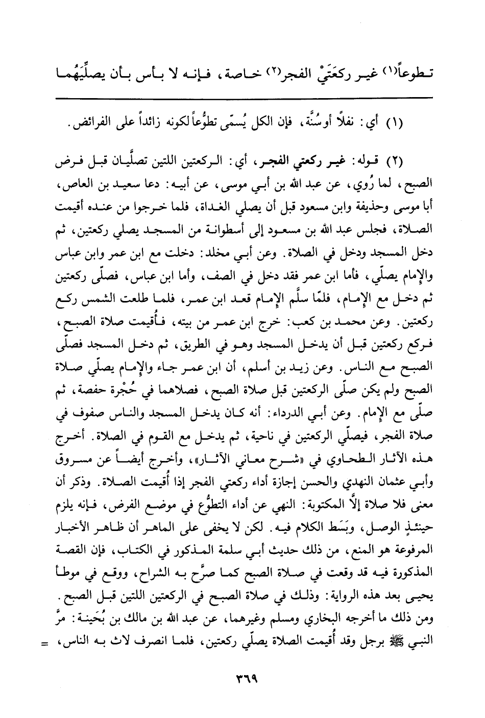 تَطَوُّعًا (¬1) غَيْرَ ركعَتَيْ الْفَجْرِ (¬2) خَاصَةً، فَإِنَّهُ لا بأس بأن يصلِّيَهُما