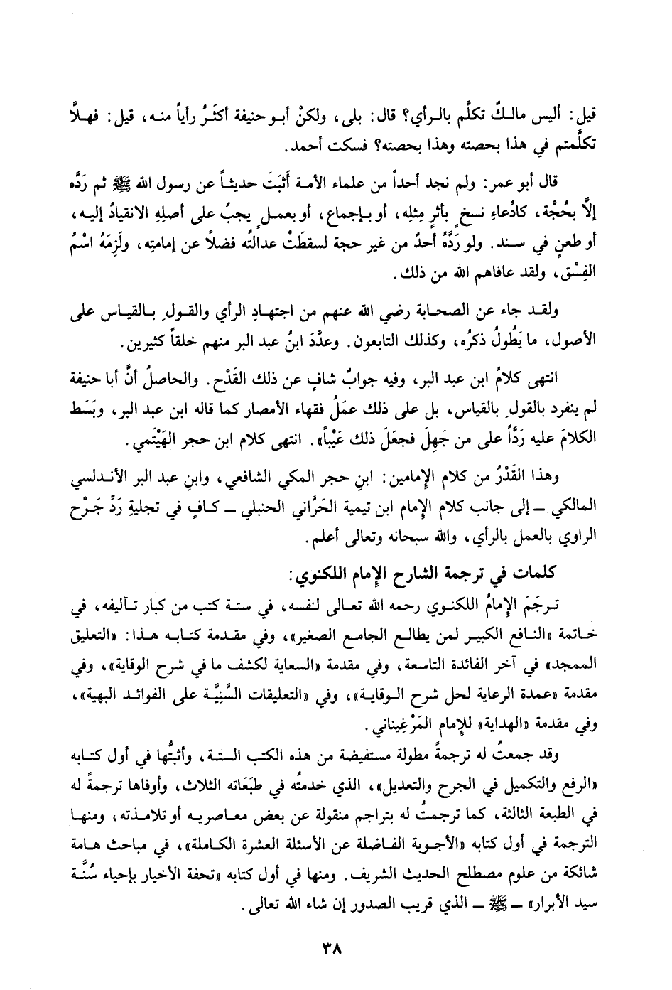 ومعلوم أن هذه الآثار الذَامة للرأي، لم يُقصَد بها اجتهادُ الرأي على الأصولِ من الكتاب والسنة والإجماع، في حادثة لم توجد في كتاب ولا سنَّة ولا إجماع، ممن يَعرف الأشباه والنظائر، وفقهَ معاني الاحكام، فيقيسُ قياسَ تشبيه وتمثيل، أو قياسَ تعليل وتأصيل، قياساً لم يعارضه ما هو أولى منه، فإنَّ أدلة جواز هذا للمفتي لغيره والعاملِ لنفسِه، ووجوبه على الحاكم والإمام أشهَرُ من أن تُذكَر هنا، وليس في هذا القياس تَحليلٌ لما حرَّمه الله سبحانه، ولا تحريم لما حللَّه الله.