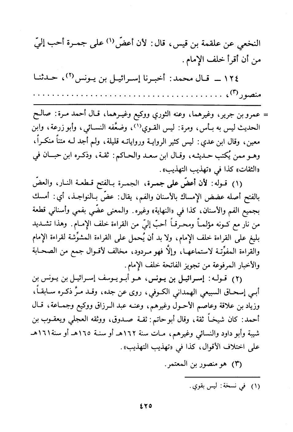 124 - قَالَ مُحَمَّدٌ: أَخْبَرَنَا إِسْرَائِيلُ بن يونس (¬2) ، حدثنا منصور (¬3) ،