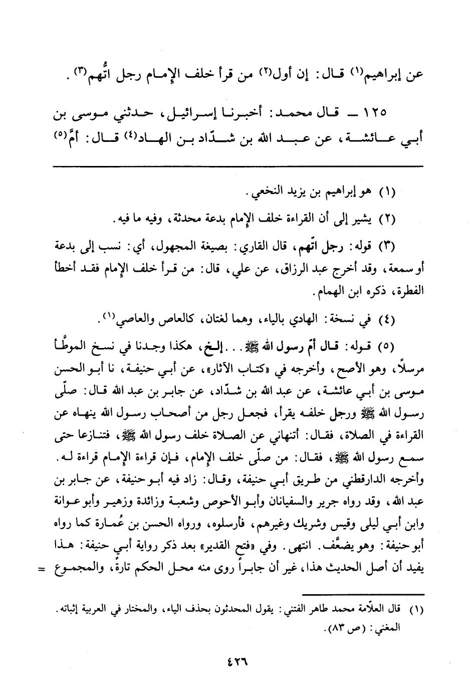 (¬2) يشير إلى أن القراءة خلف الإمام بدعة محدثة، وفيه ما فيه.