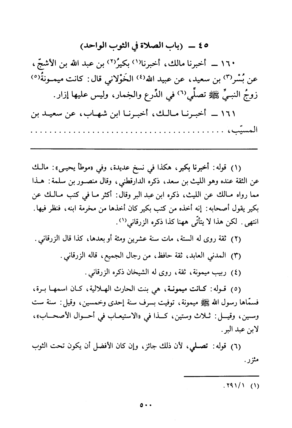 160 - أَخْبَرَنَا مَالِكٌ، أَخْبَرَنَا (¬1) بكيُر (¬2) بْنُ عَبْدِ اللَّهِ بْنِ الأَشَجِّ، عَنْ بُسْر (¬3) بْنِ سَعِيدٍ، عَنْ عُبَيْدِ اللَّهِ (¬4) الخَوْلاني قَالَ: كَانَتْ ميمونةُ (¬5) زوجُ النبيِّ صَلَّى اللَّهُ عَلَيْهِ وَسَلَّمَ تصَلِّي (¬6) فِي الدِّرع والخِمار، وَلَيْسَ عَلَيْهَا إِزَارٌ.