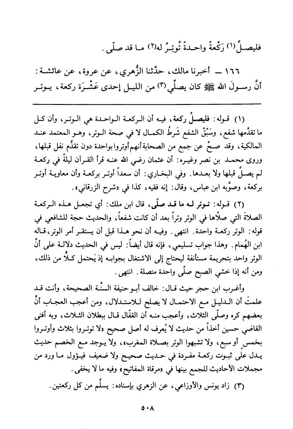 166 - أَخْبَرَنَا مَالِكٌ، حدَّثنا الزُّهري، عَنْ عُرْوَةَ، عن عائشة: أنَّ رسولَ الله صلى الله عَلَيْهِ وَسَلَّمَ كَانَ يصلِّي (¬3) مِنَ اللَّيْلِ إِحْدَى عَشْرَة ركعة، يوتر