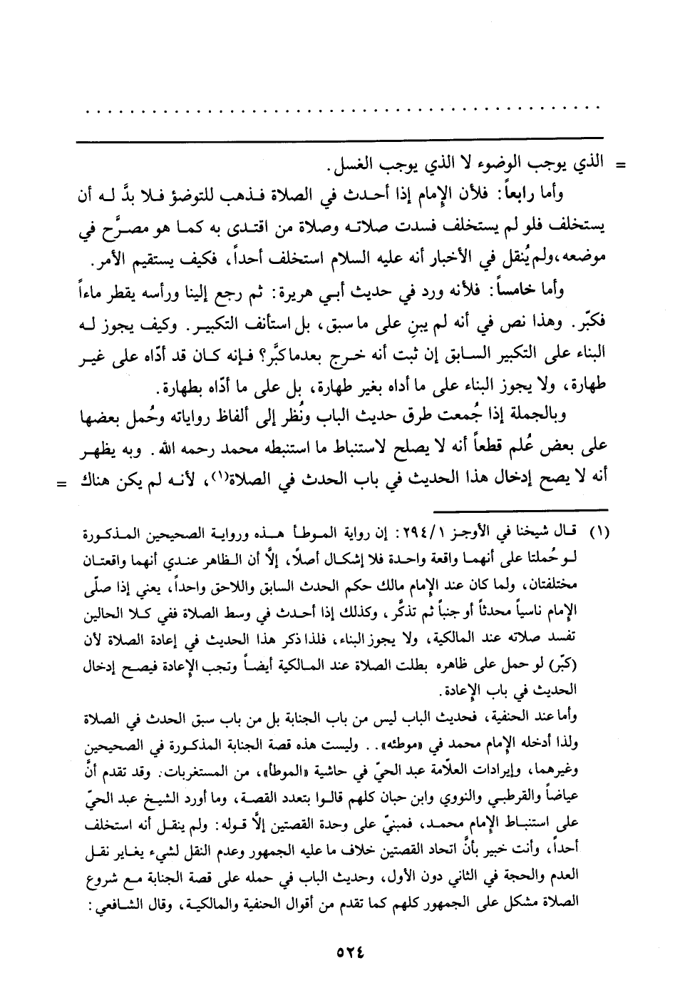 وبالجملة إذا جُمعت طرق حديث الباب ونُظر إلى ألفاظ رواياته وحُمل بعضها على بعض عُلم قطعاً أنه لا يصلح لاستنباط ما استنبطه محمد رحمه الله. وبه يظهر أنه لا يصح إدخال هذا الحديث في باب الحدث في الصلاة (قال شيخنا في الأوجز 1/294: إن رواية الموطأ هذه ورواية الصحيحين المذكورة لو حملتا على أنهما واقعة واحدة فلا إشكال أصلاً، إلاَّ أن الظاهر عندي أنهما واقعتان مختلفتان، ولما كان عند الإمام مالك حكم الحدث السابق واللاحق واحداً، يعني إذا صلّى الإمام ناسياً محدثاً أو جنباً ثم تذكَّر، وكذلك إذا أحدث في وسط الصلاة ففي كلا الحالين تفسد صلاته عند المالكية، ولا يجوز البناء، فلذا ذكر هذا الحديث في إعادة الصلاة لأن (كبّر) لو حمل على ظاهره بطلت الصلاة عند المالكية أيضاً وتجب الإعادة فيصح إدخال الحديث في باب الإعادة.