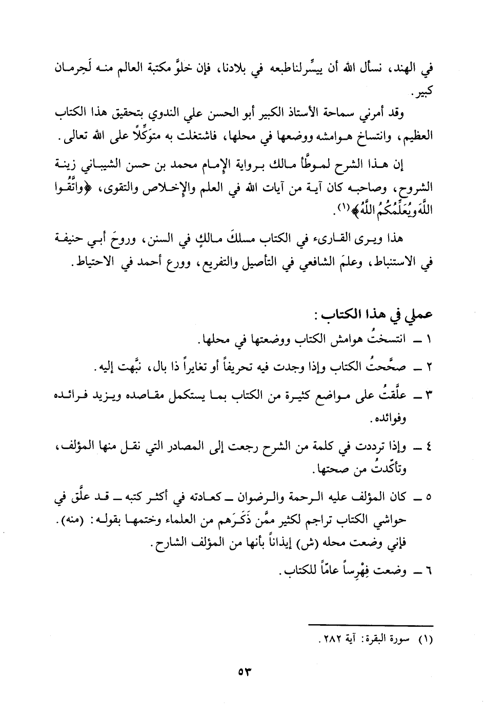 وقد أمرني سماحة الأستاذ الكبير أبو الحسن علي الندوي بتحقيق هذا الكتاب العظيم، وانتساخ هوامشه ووضعها في محلها، فاشتغلت به متوَكِلاً على الله تعالى.
