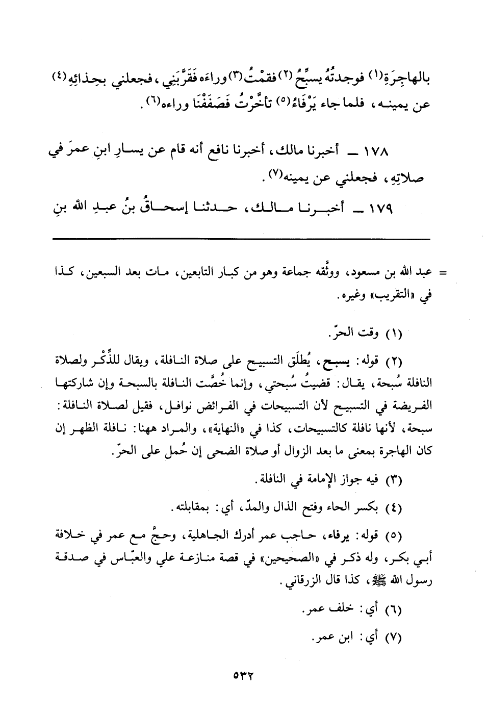 178 - أَخْبَرَنَا مَالِكٌ، أَخْبَرَنَا نَافِعٌ أنه قام عن يسار ابنِ عمرَ فِي صلاتهِ، فَجَعَلَنِي عَنْ يَمِينِهِ (¬7) .