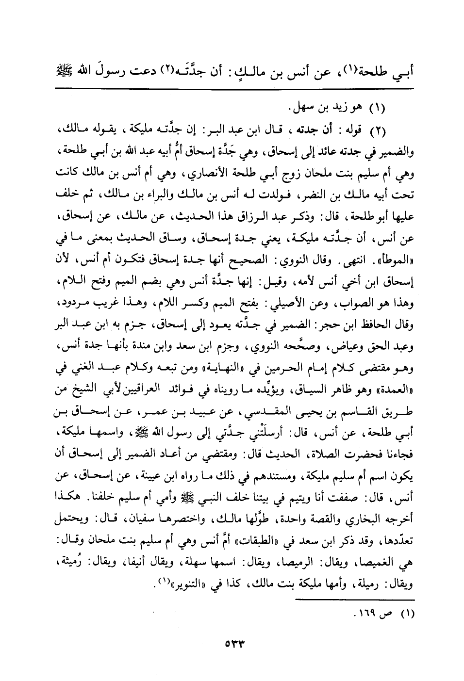 (¬2) قوله: أن جدته، قال ابن عبد البر: إن جدّته مليكة، يقوله مالك، والضمير في جدته عائد إلى إسحاق، وهي جَدَّة إسحاق أمُّ أبيه عبد الله بن أبي طلحة، وهي أم سليم بنت ملحان زوج أبي طلحة الأنصاري، وهي أم أنس بن مالك كانت تحت أبيه مالك بن النضر، فولدت له أنس بن مالك والبراء بن مالك، ثم خلف عليها أبو طلحة، قال: وذكر عبد الرزاق هذا الحديث، عن مالك، عن إسحاق، عن أنس، أن جدَّته مليكة، يعني جدة إسحاق، وساق الحديث بمعنى ما في "الموطأ". انتهى. وقال النووي: الصحيح أنها جدة إسحاق فتكون أم أنس، لأن إسحاق ابن أخي أنس لأمه، وقيل: إنها جدّة أنس وهي بضم الميم وفتح اللام، وهذا هو الصواب، وعن الأصيلي: بفتح الميم وكسر اللام، وهذا غريب مردود، وقال الحافظ ابن حجر: الضمير في جدَّته يعود إلى إسحاق، جزم به ابن عبد البر وعبد الحق وعياض، وصححه النووي، وجزم ابن سعد وابن مندة بأنها جدة أنس، وهو مقتضى كلام إمام الحرمين في "النهاية" ومن تبعه وكلام عبد الغني في "العمدة" وهو ظاهر السياق، ويؤيِّده ما رويناه في فوائد العراقيين لأبي الشيخ من طريق القاسم بن يحيى المقدسي، عن عبيد بن عمر، عن إسحاق بن أبي طلحة، عن أنس، قال: أرسلَتني جدّتي إلى رسول الله صلى الله عليه وسلم، واسمها مليكة، فجاءنا فحضرت الصلاة، الحديث قال: ومقتضي من أعاد الضمير إلى إسحاق، أن يكون اسم أم سليم مليكة، ومستندهم في ذلك ما رواه ابن عيينة، عن إسحاق، عن أنس، قال: صففت أنا ويتيم في بيتنا خلف النبي صلى الله عليه وسلم وأمي أم سليم خلفنا. هكذا أخرجه البخاري والقصة واحدة، طوَّلها مالك، واختصرها سفيان، قال: ويحتمل تعدّدها، وقد ذكر ابن سعد في "الطبقات" أمَّ أنس وهي أم سليم بنت ملحان وقال: هي الغميصا، ويقال: الرميصا، ويقال: اسمها سهلة، ويقال أنيفا، ويقال: رُميثة، ويقال: رميلة، وأمها مليكة بنت مالك، كذا في "التنوير". (ص 169) .