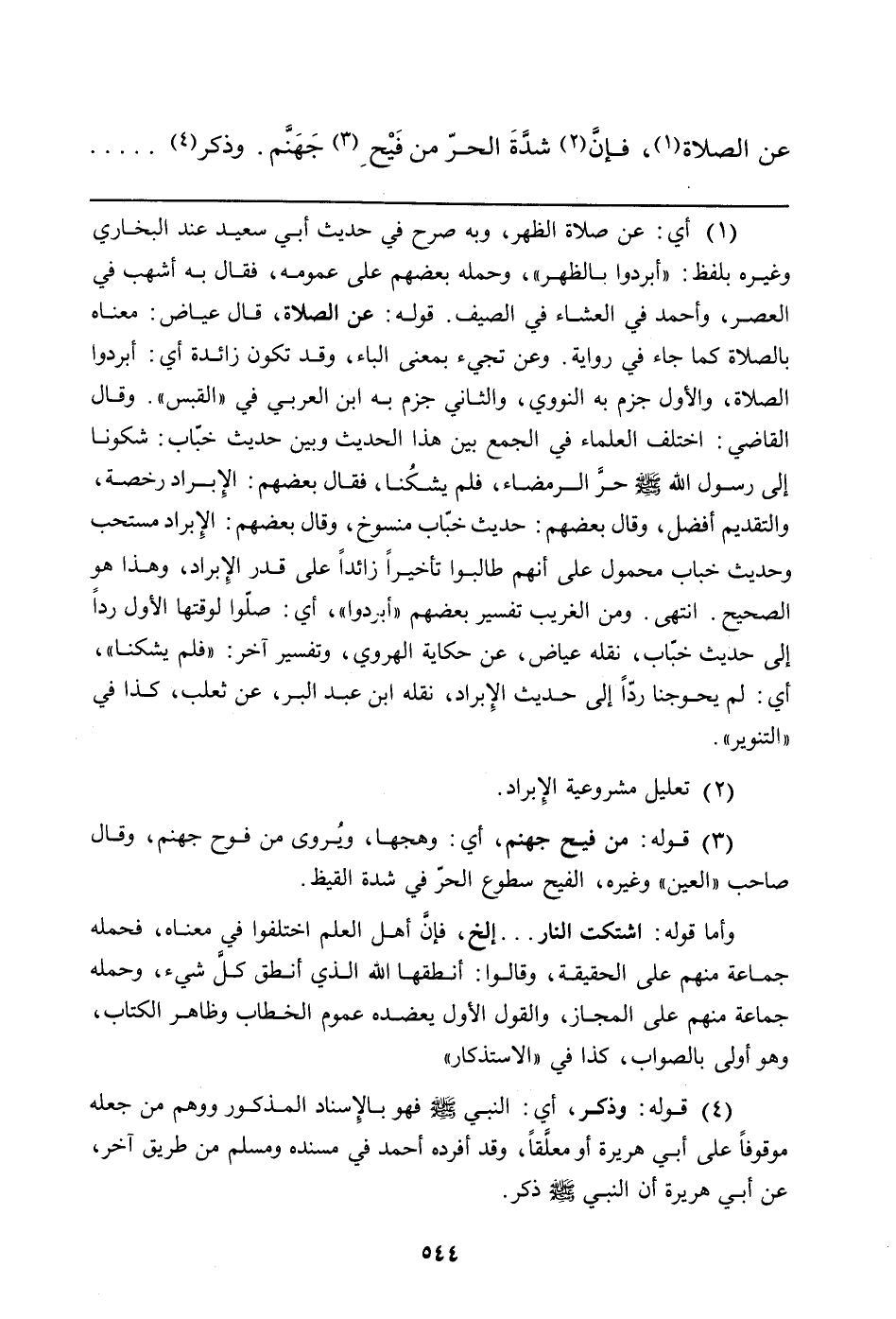 عَنِ الصَّلاةِ (¬1) ، فإنَّ (¬2) شدَّة الْحَرِّ مِنْ فَيْحِ (¬3) جَهَنّم. وذكر (¬4)