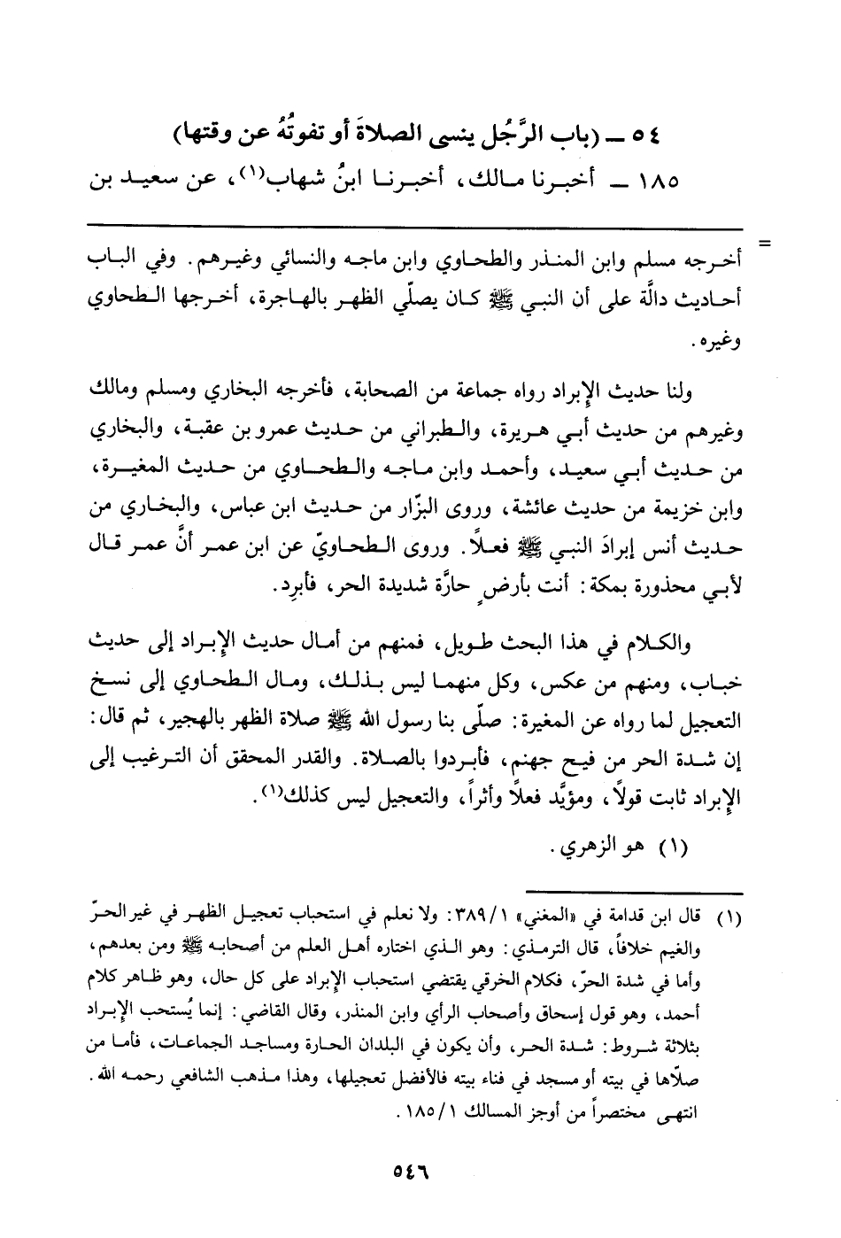 أخرجه مسلم وابن المنذر والطحاوي وابن ماجه والنسائي وغيرهم. وفي الباب أحاديث دالَّة على أن النبي صلى الله عليه وسلم كان يصلي الظهر بالهاجرة، أخرجها الطحاوي وغيره.