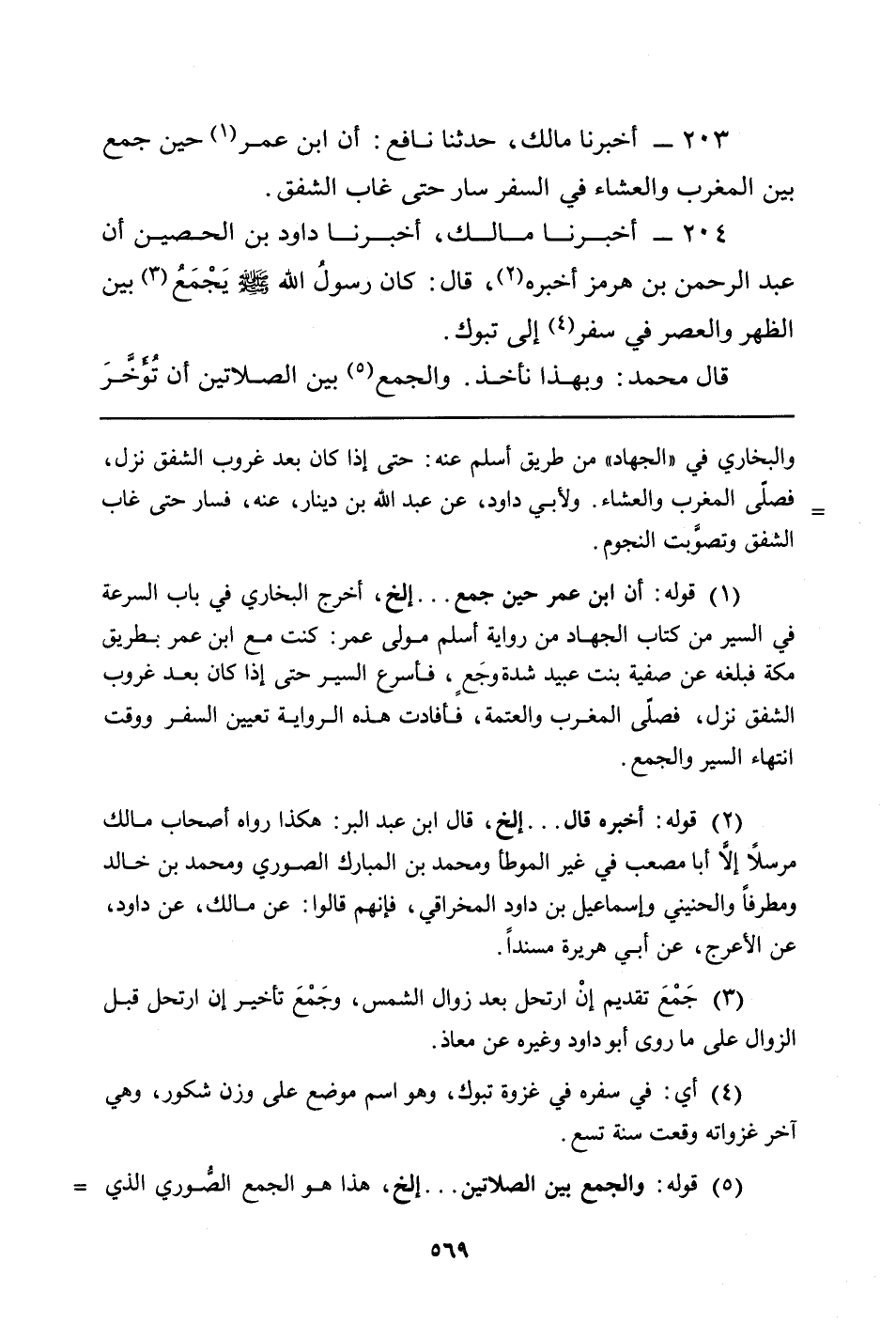 204 - أَخْبَرَنَا مَالِكٌ، أَخْبَرَنَا دَاوُدُ بْنُ الْحُصَيْنِ أَنَّ عَبْدَ الرَّحْمَنِ بْنِ هُرْمُزَ أَخْبَرَهُ (¬2) ، قَالَ: كَانَ رسولُ اللَّهِ يَجْمَعُ (¬3) بَيْنَ الظُّهْرِ وَالْعَصْرِ فِي سَفَرٍ (¬4) إِلَى تَبُوكَ.