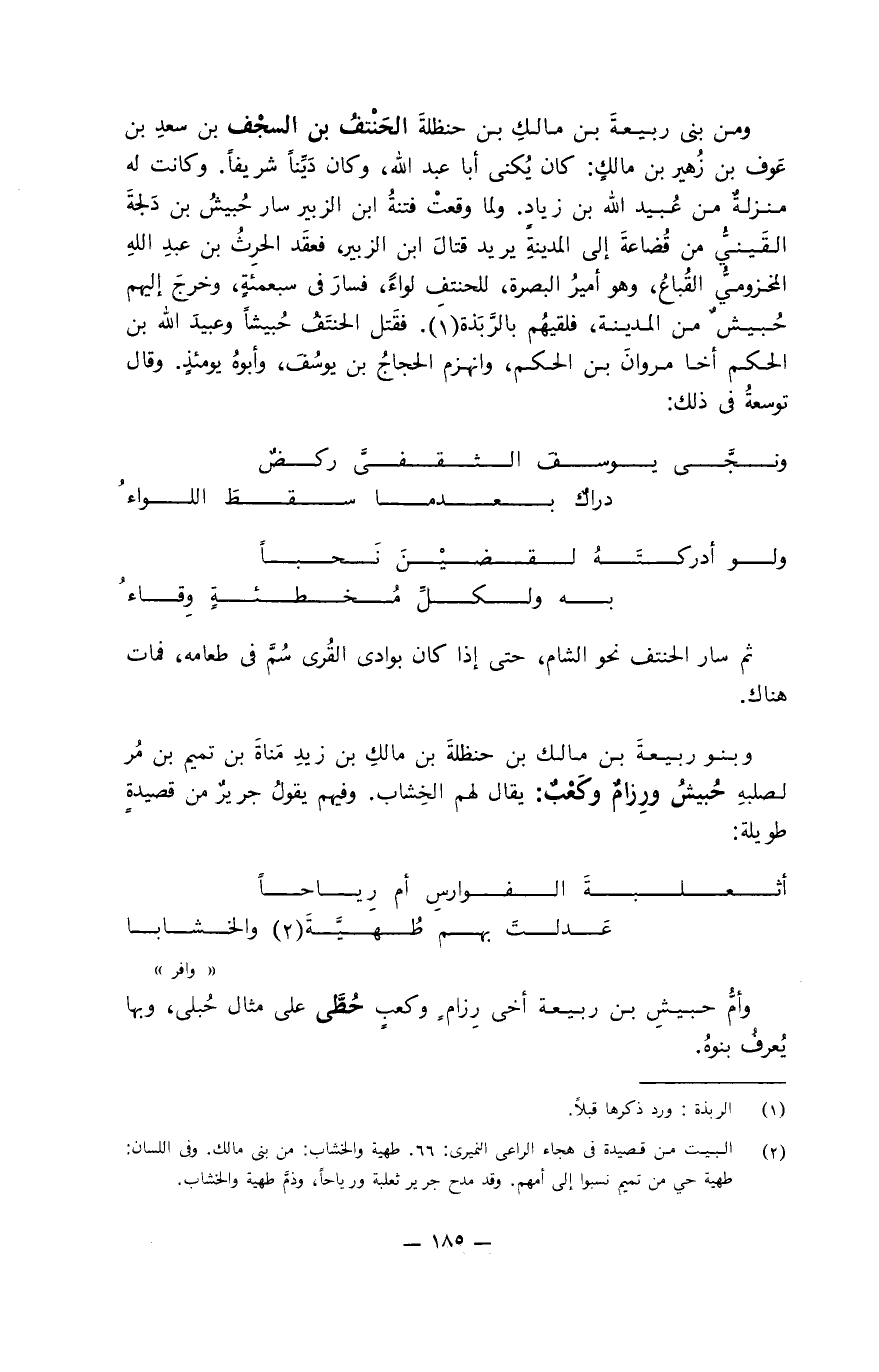 وقال أبو عبيدة مَعمر بن المثنى: والعنبرُ يسمَّى خُضَّم. وأولُ قصيدة طريف: