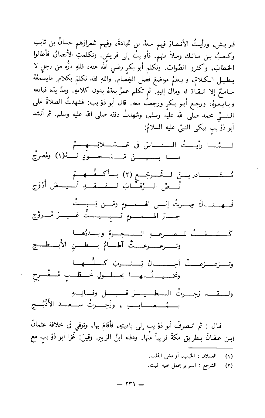إلا بحقِّها. وممِّا يُستَحْسنُ لأبي خِراشٍ الهُذَليِّ، وهو أحدُ حكماء العرب، قولُه يرثى أخاهُ عَروة: