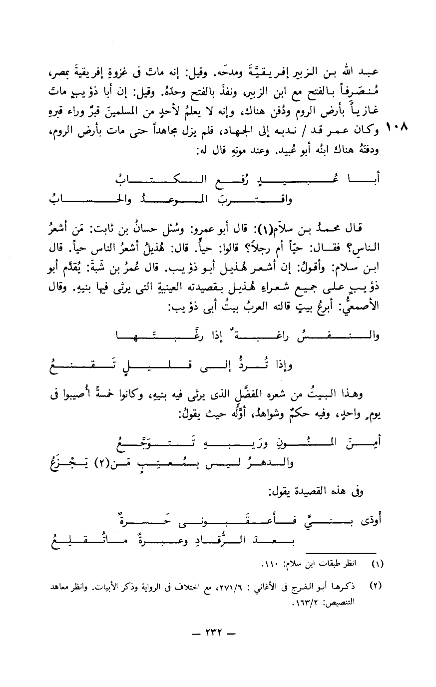 وقال أبو خراش يرثى أخاه عُروة،، أَبدع في ذلك: حَمِدتُ إلهي بعد عُروة إذ نجا خِراشٌ، وبعضُ الشرِّ أهونُ من بعضِ